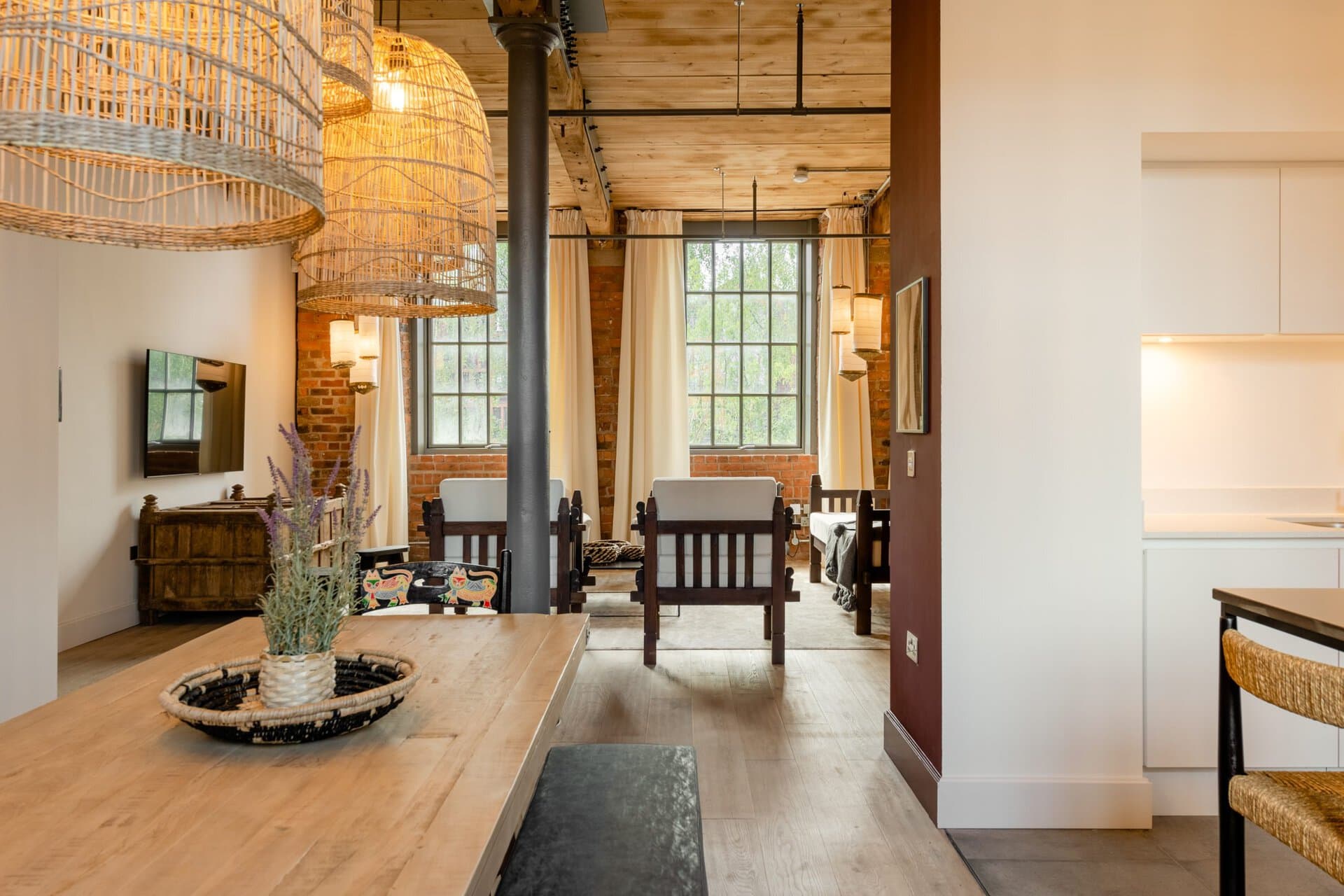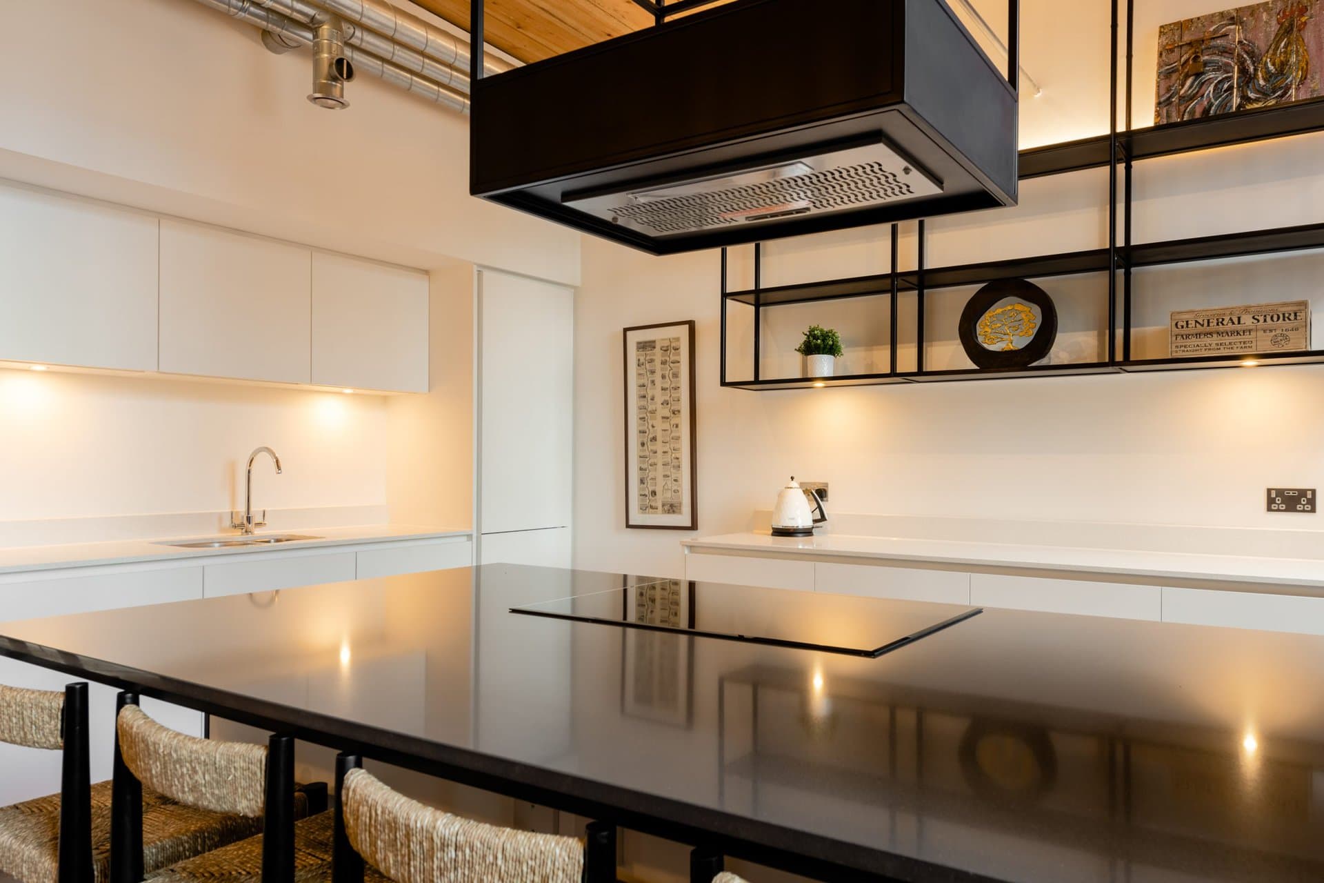 The living space boasts impressively high ceilings, an extremely comfortable sofa and a 50 inch Sky Glass TV with all streaming platforms. This is the ideal space to relax and wind down.Â