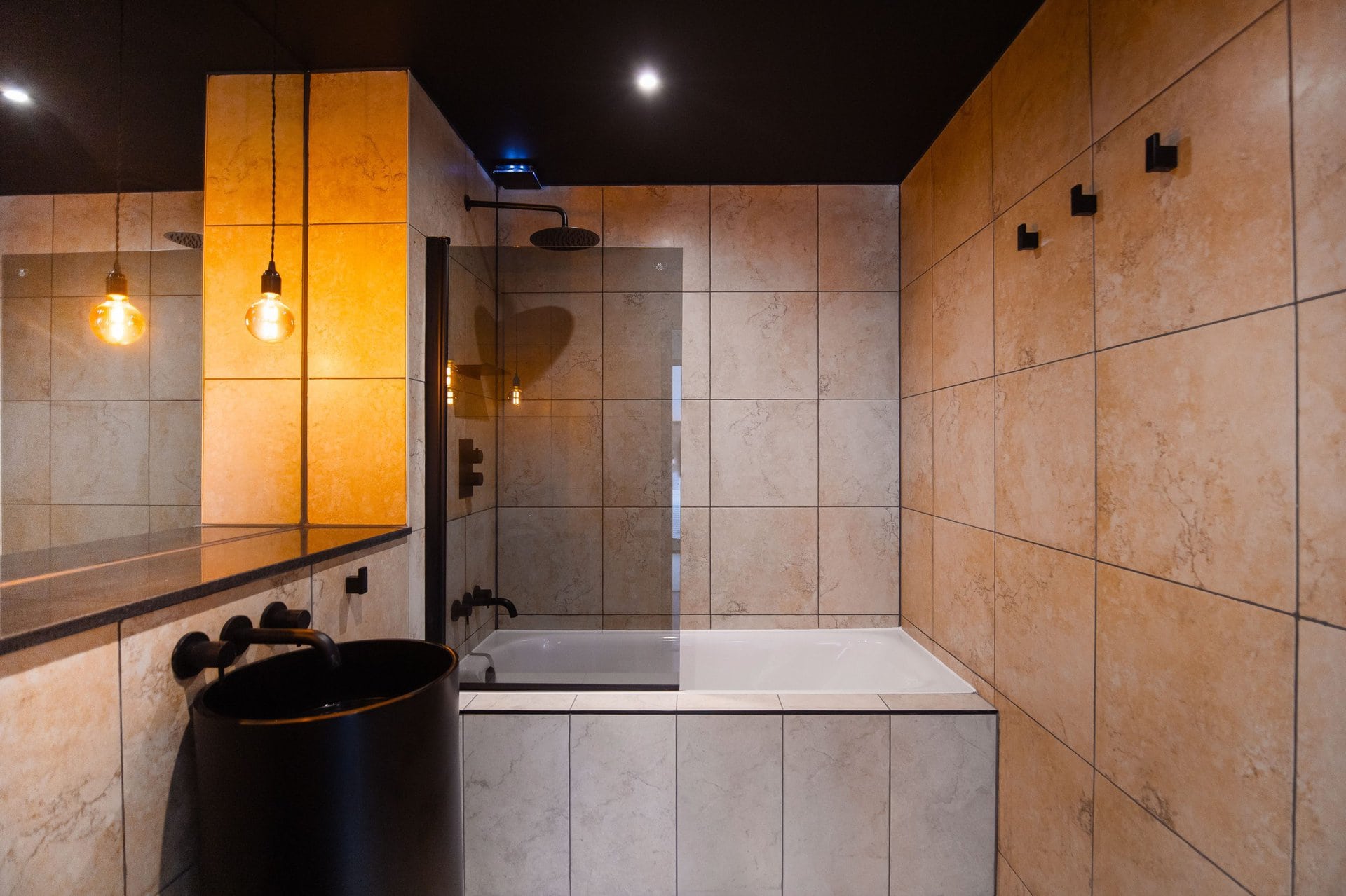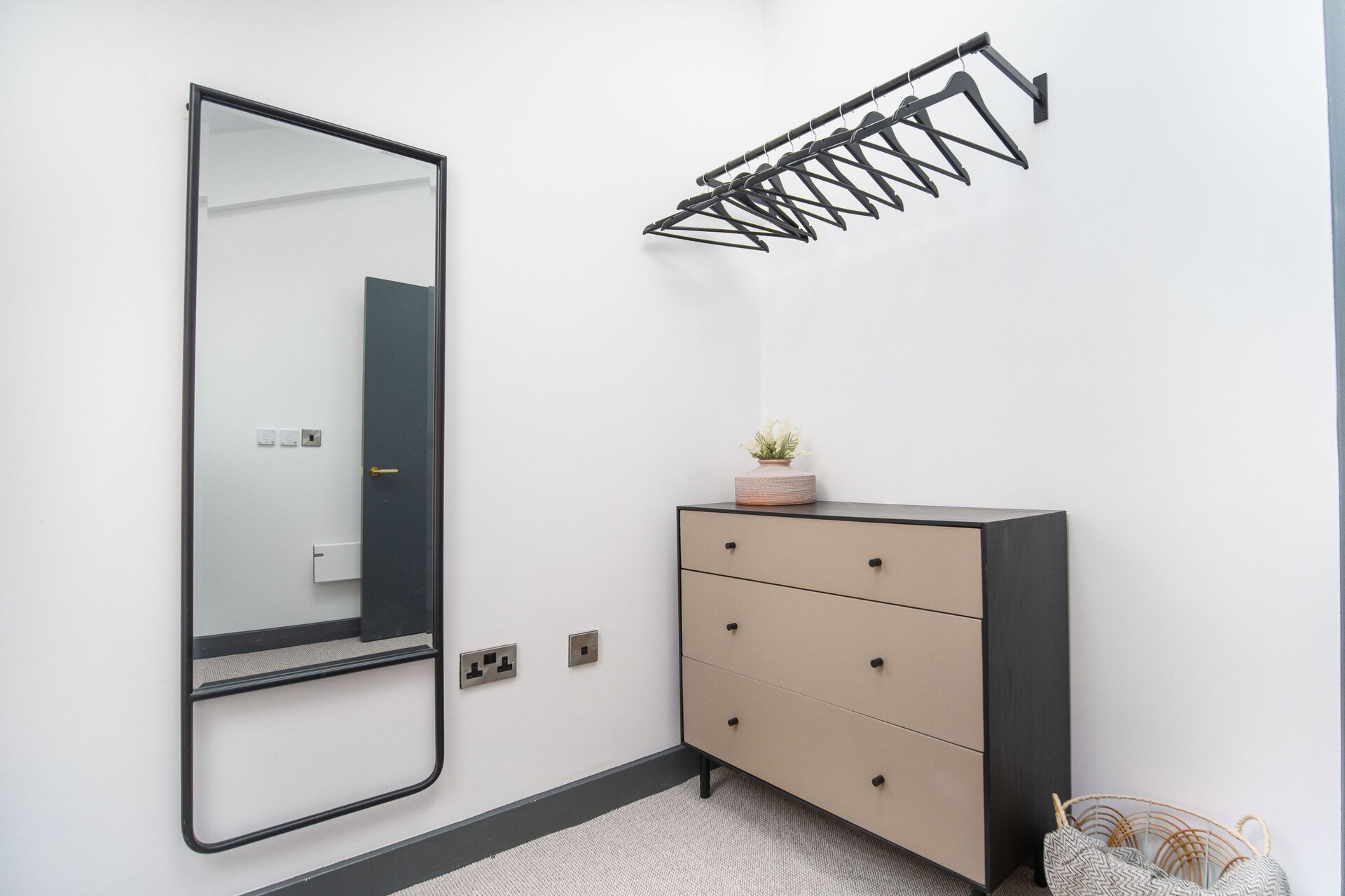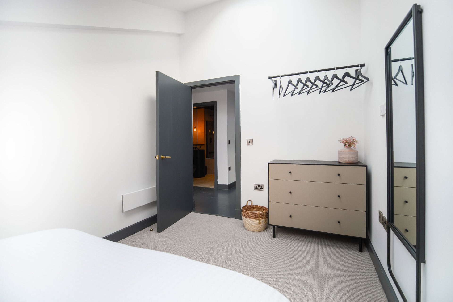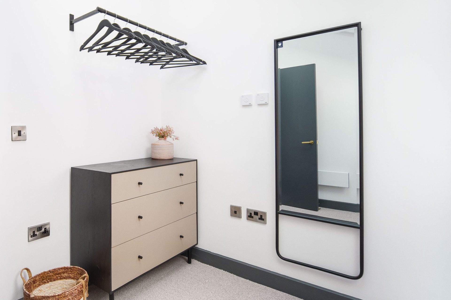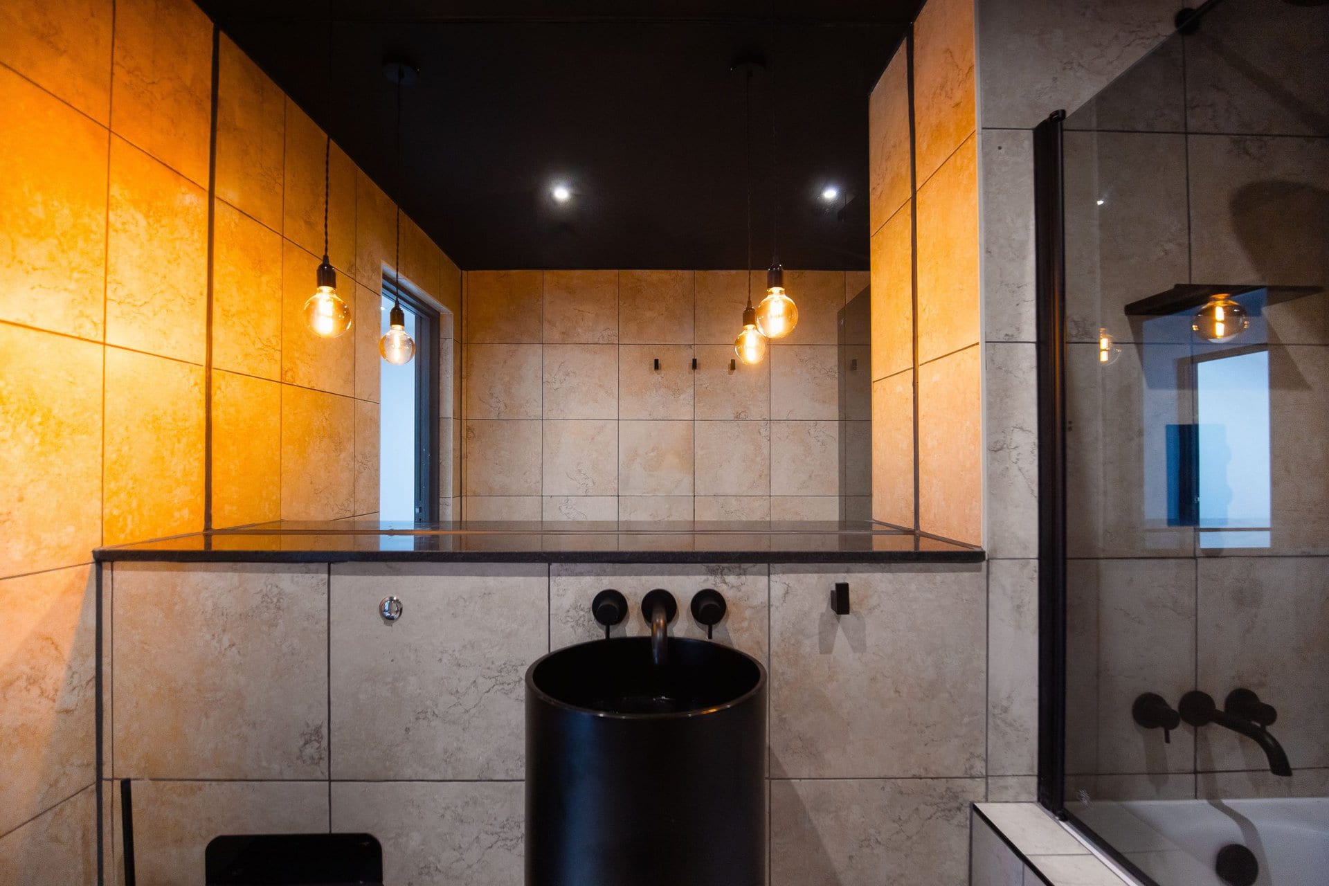 The bathrooms balance simplicity with luxury.Boasting a large walk in shower  in the upstairs en suite and a spacious tub in the downstairs both bathrooms have mirrored cabinets that help bounce light around the rooms.Â