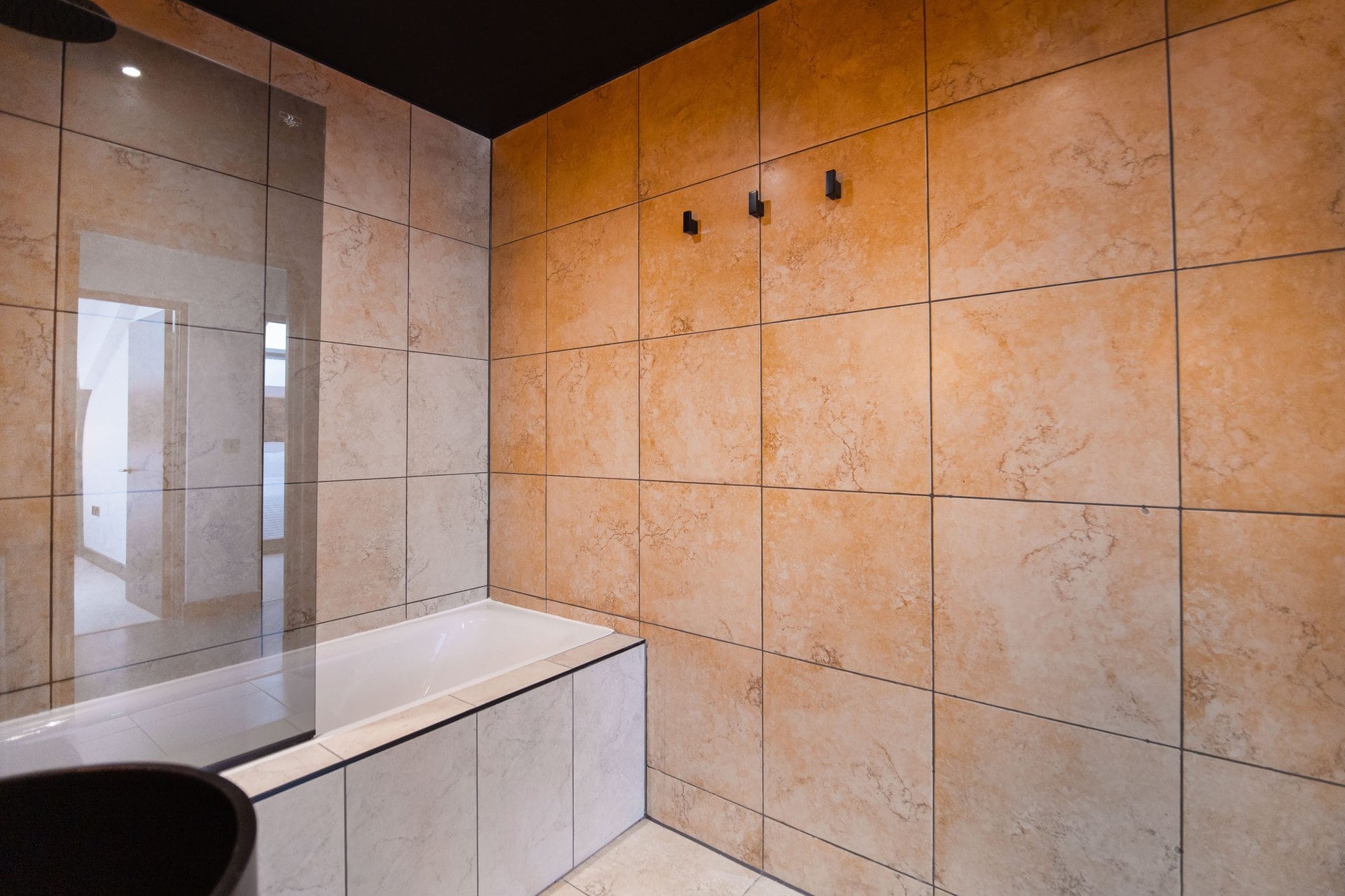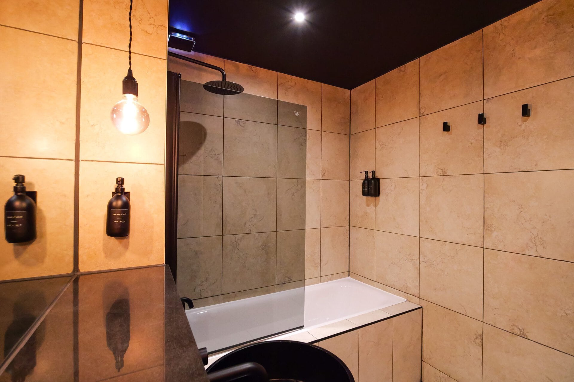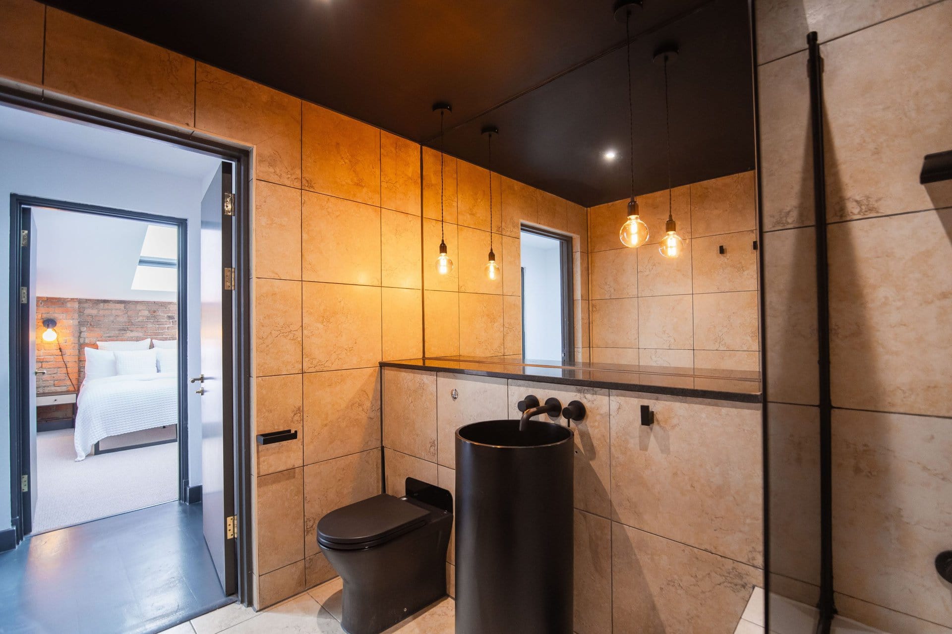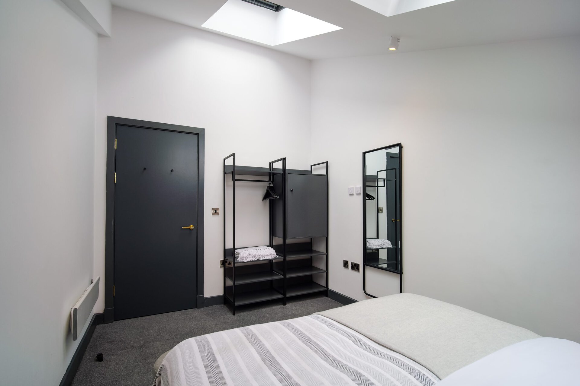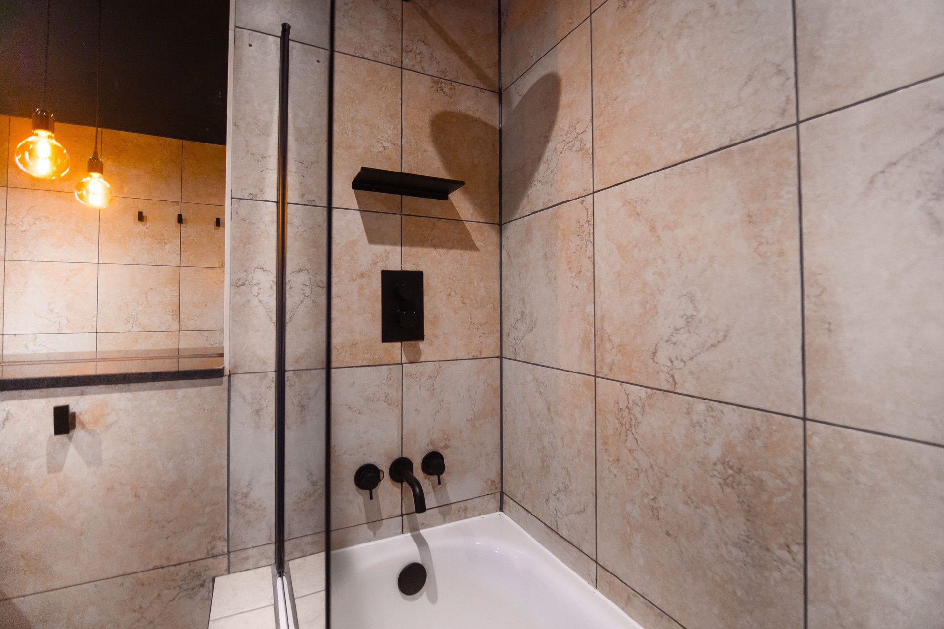 The bathrooms balance simplicity with luxury.Boasting a large walk in shower  in the upstairs en suite and a spacious tub in the downstairs both bathrooms have mirrored cabinets that help bounce light around the rooms.Â