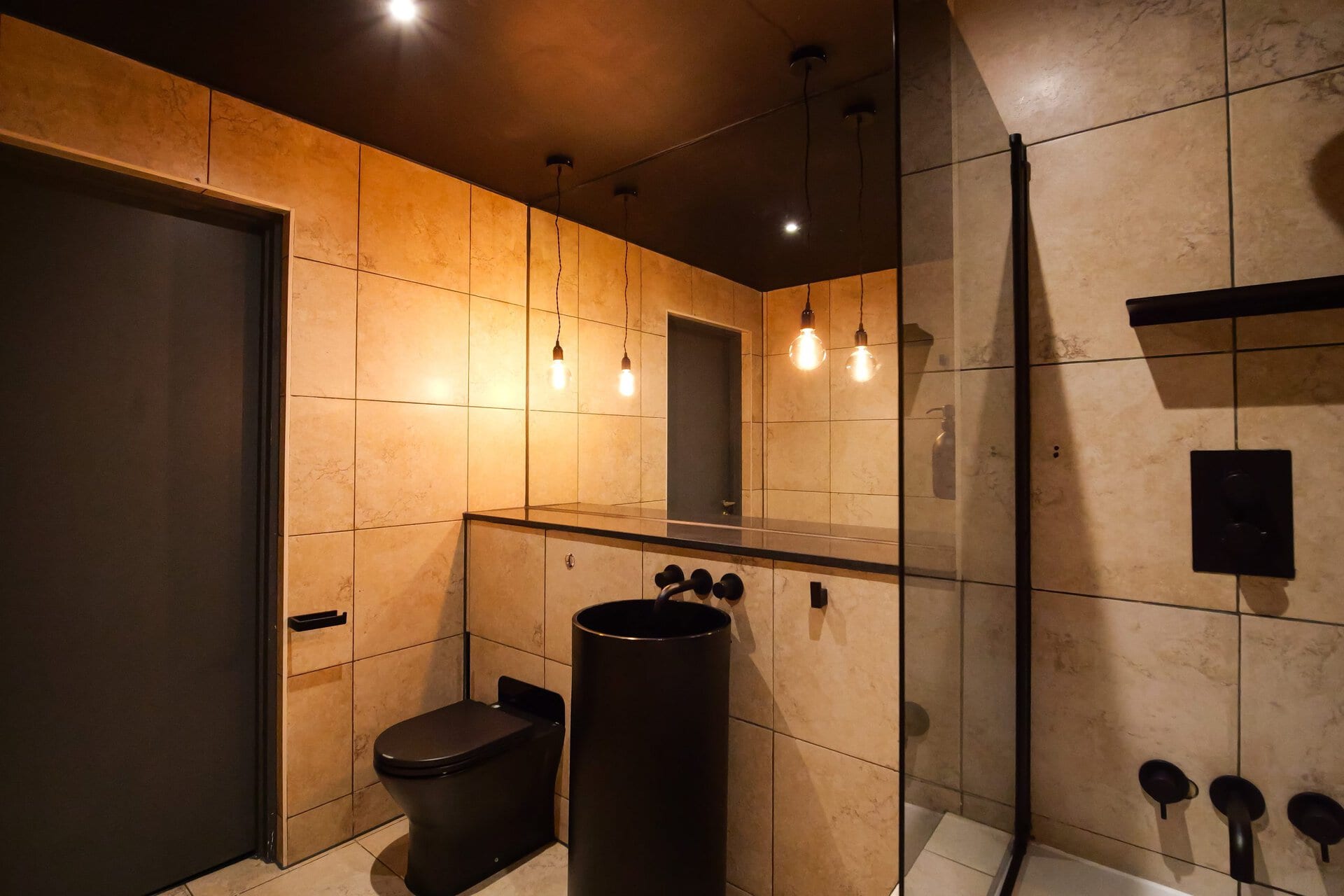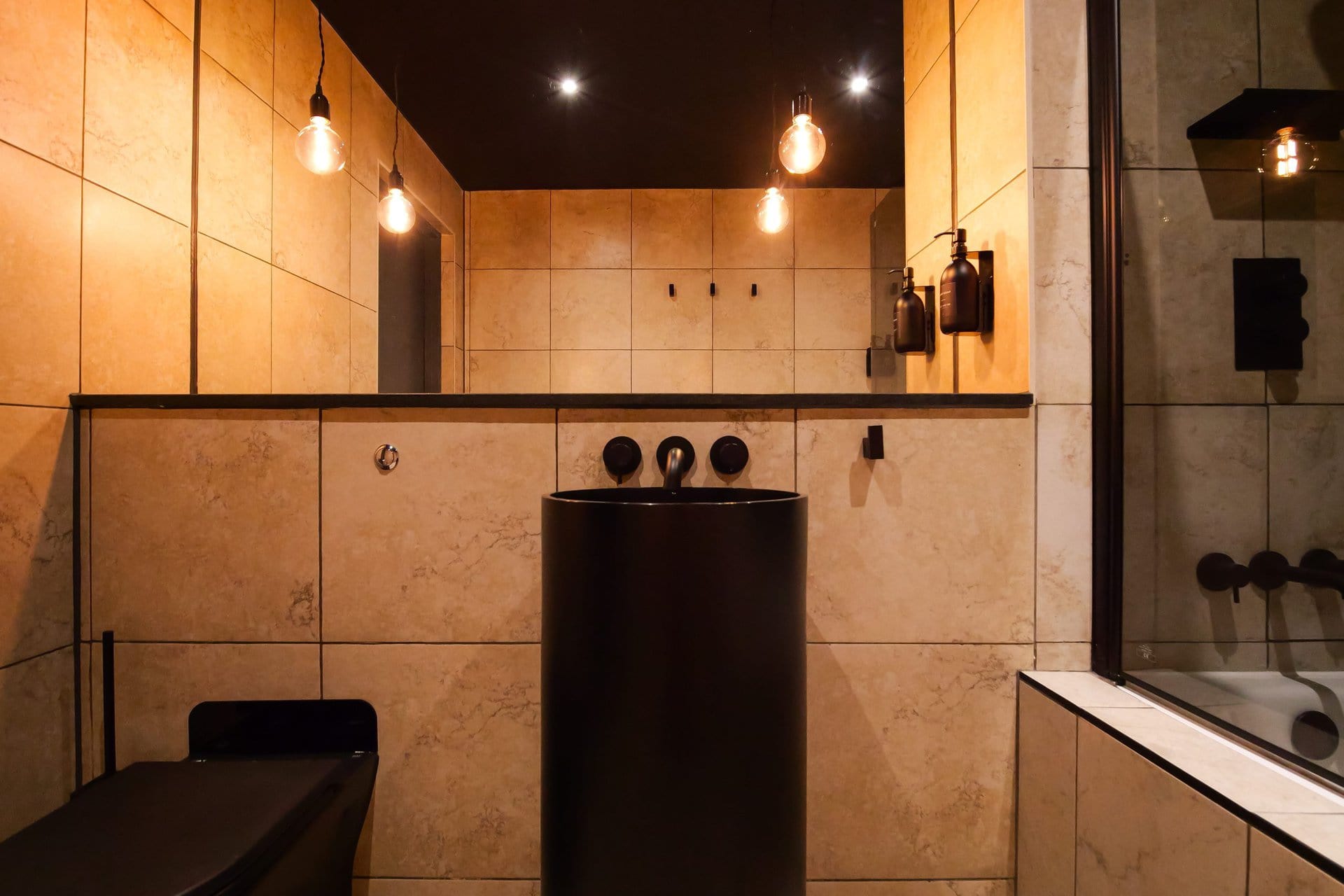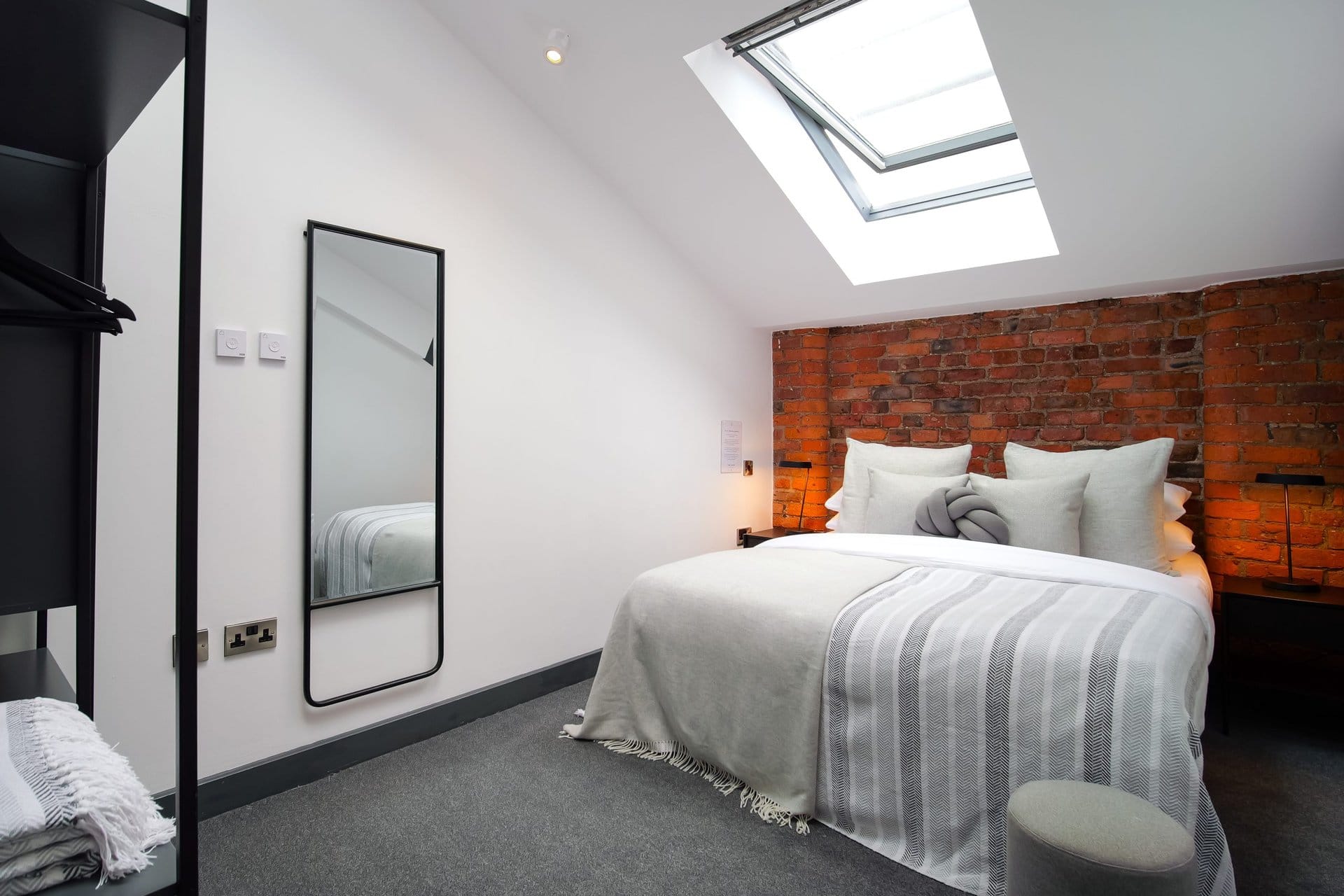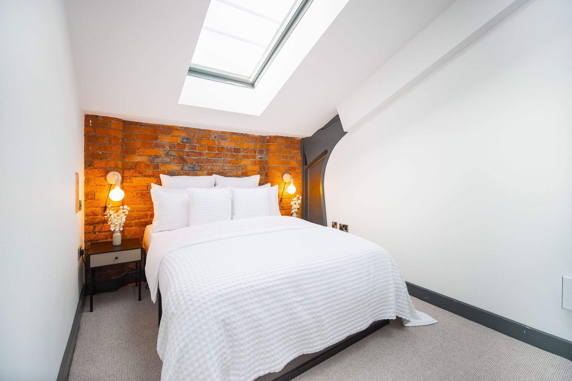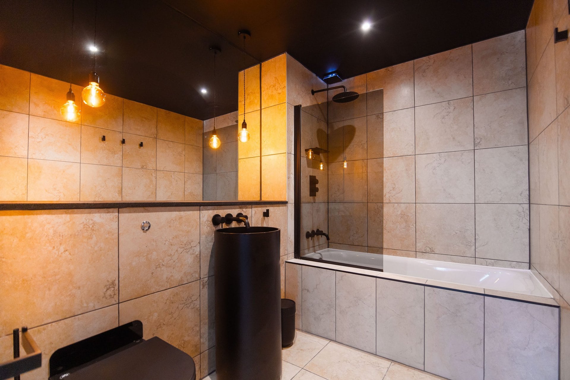 The bathrooms balance simplicity with luxury.Boasting a large walk in shower  in the upstairs en suite and a spacious tub in the downstairs both bathrooms have mirrored cabinets that help bounce light around the rooms.Â
