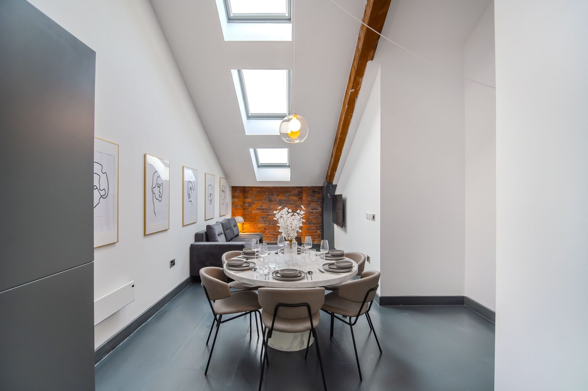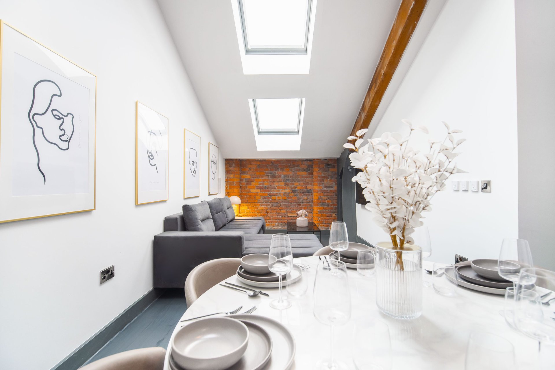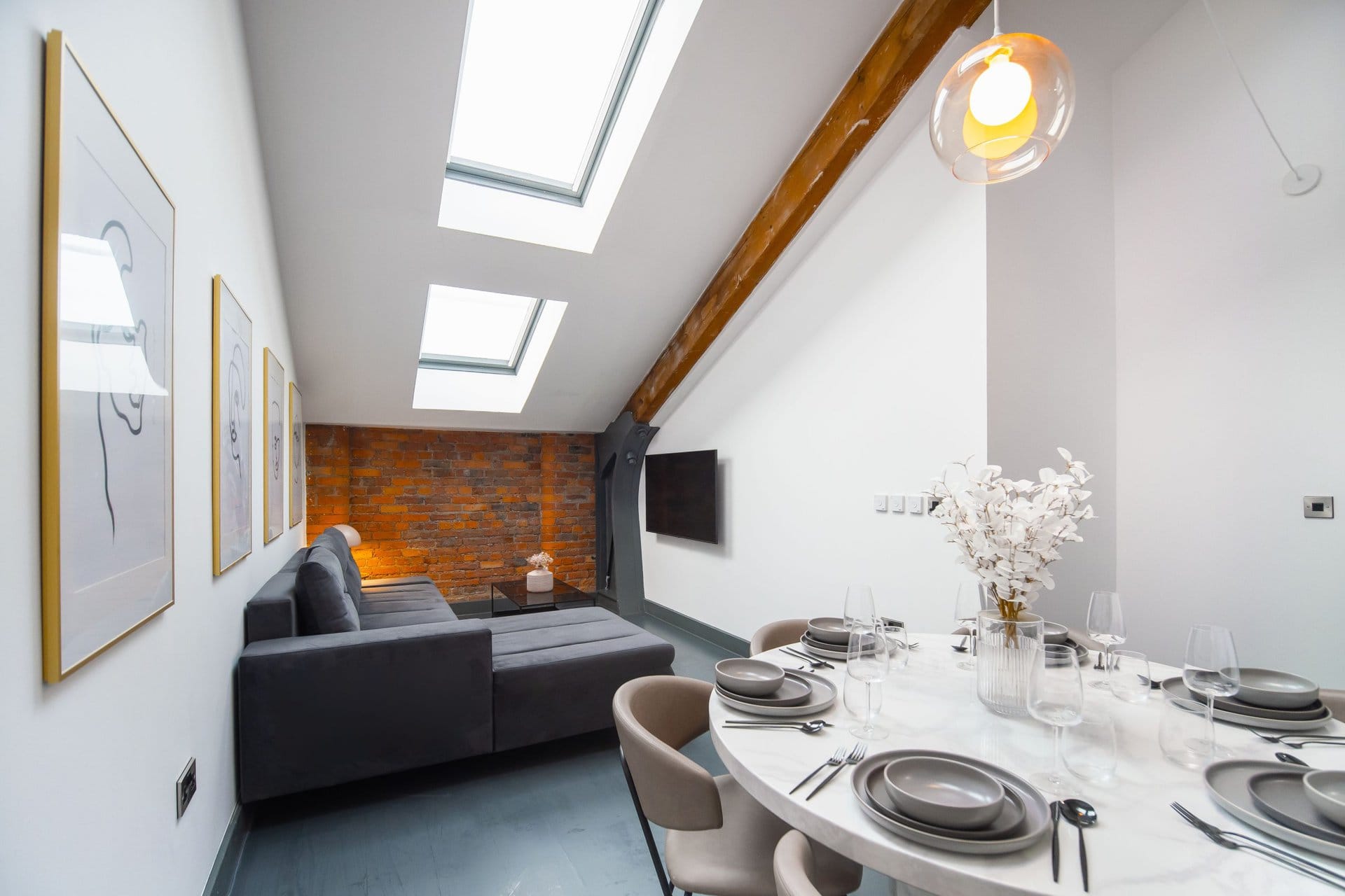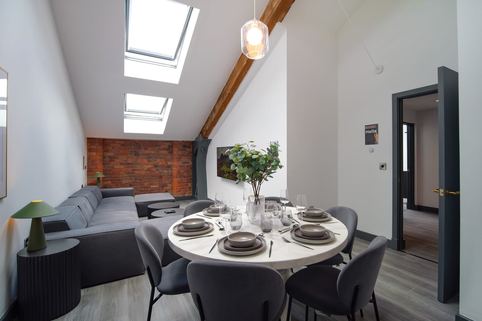 The living space boasts impressively high ceilings, an extremely comfortable sofa and a 50 inch Sky Glass TV with all streaming platforms. This is the ideal space to relax and wind down.Â