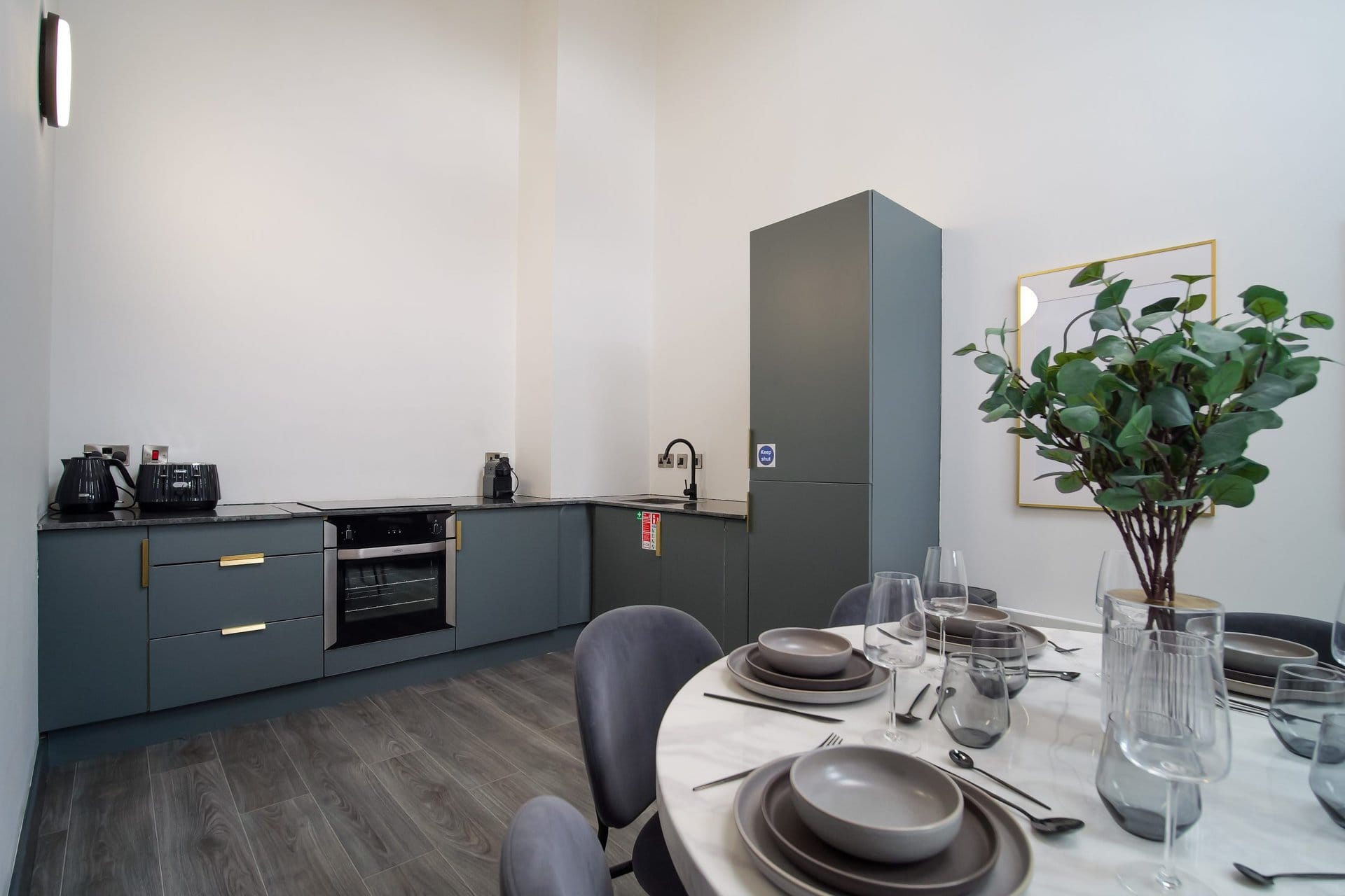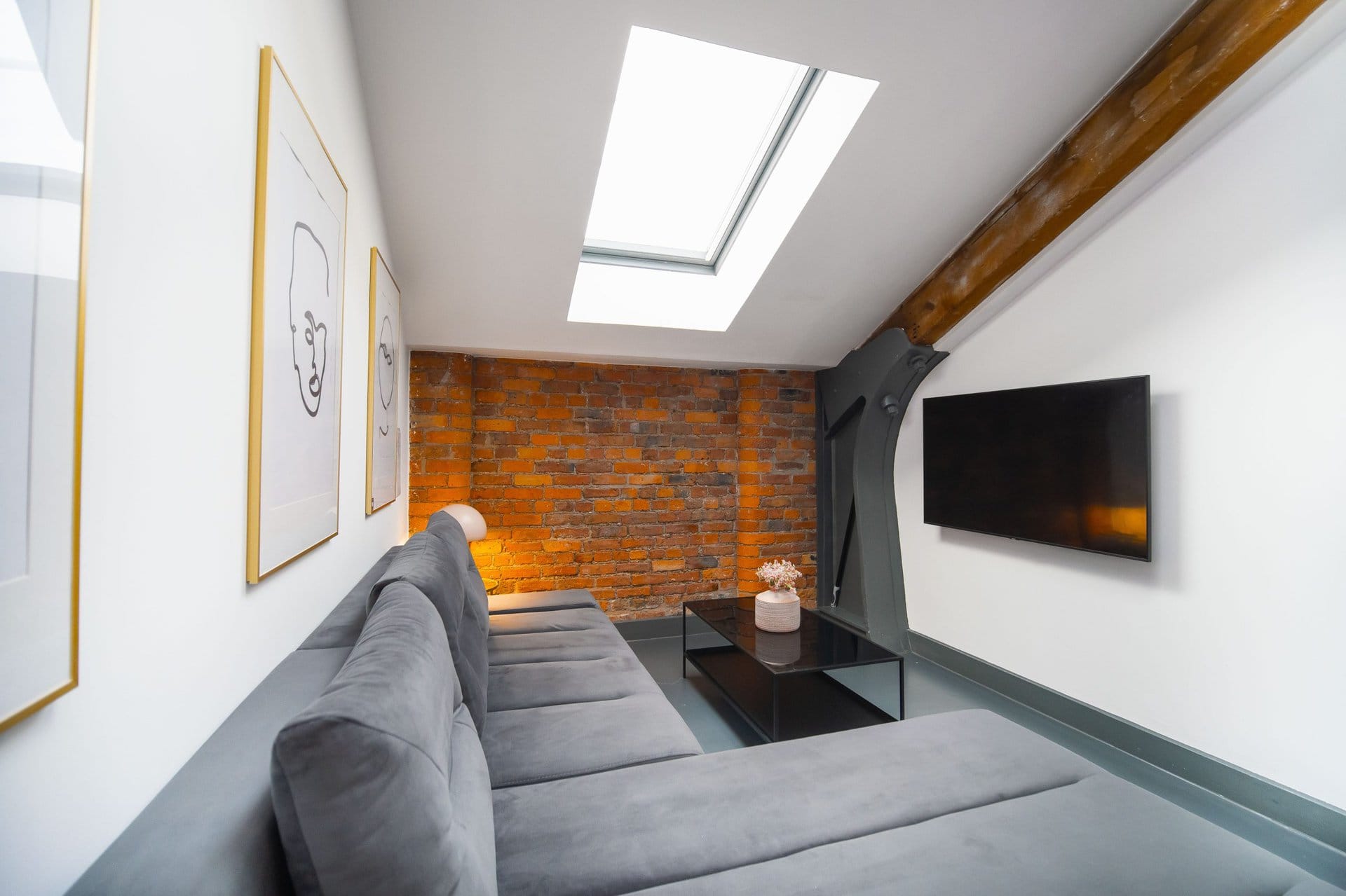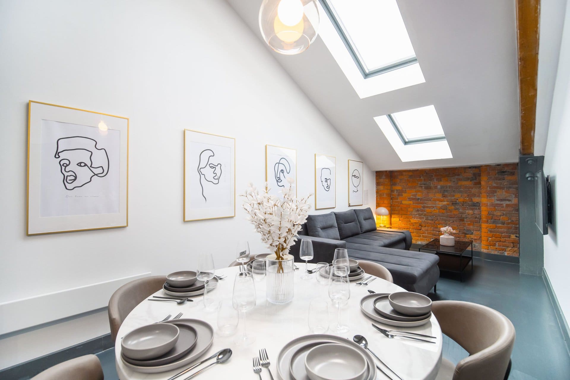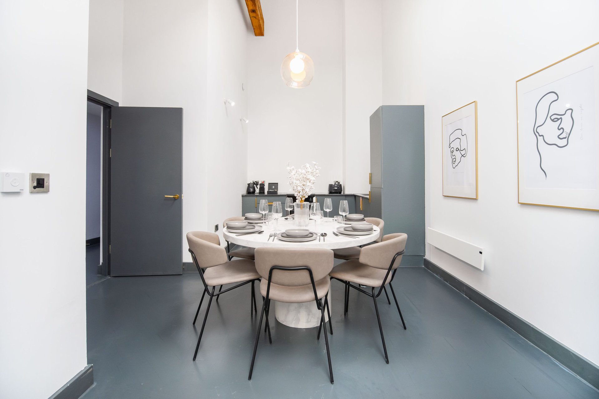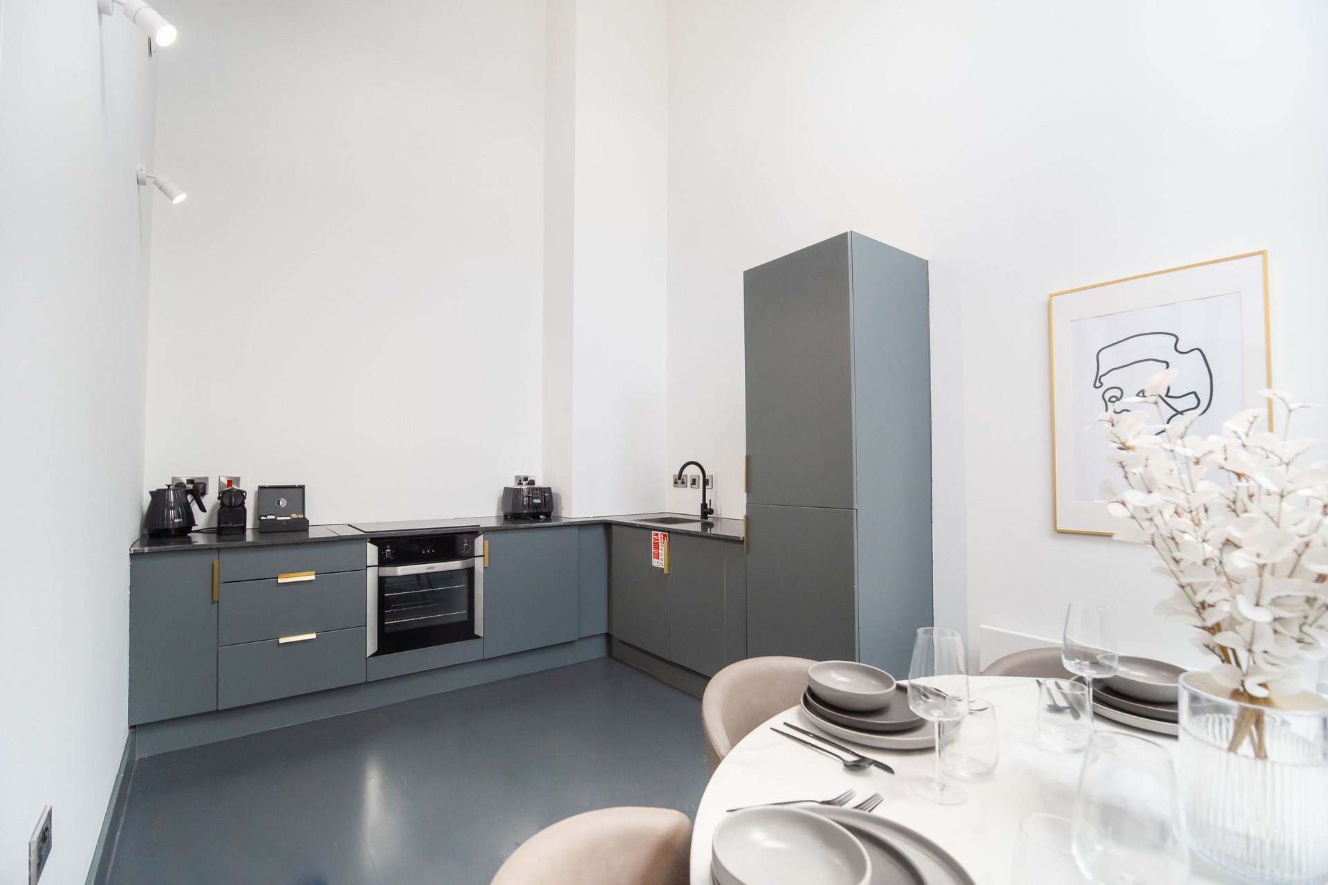 The living space boasts impressively high ceilings, an extremely comfortable sofa and a 50 inch Sky Glass TV with all streaming platforms. This is the ideal space to relax and wind down.Â