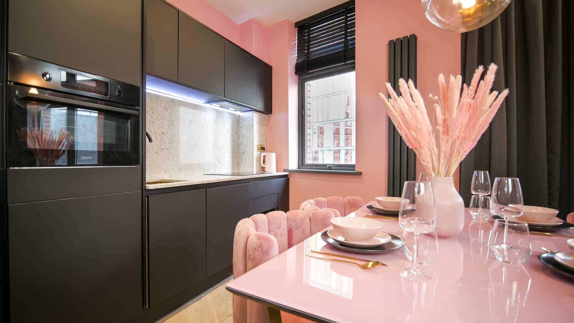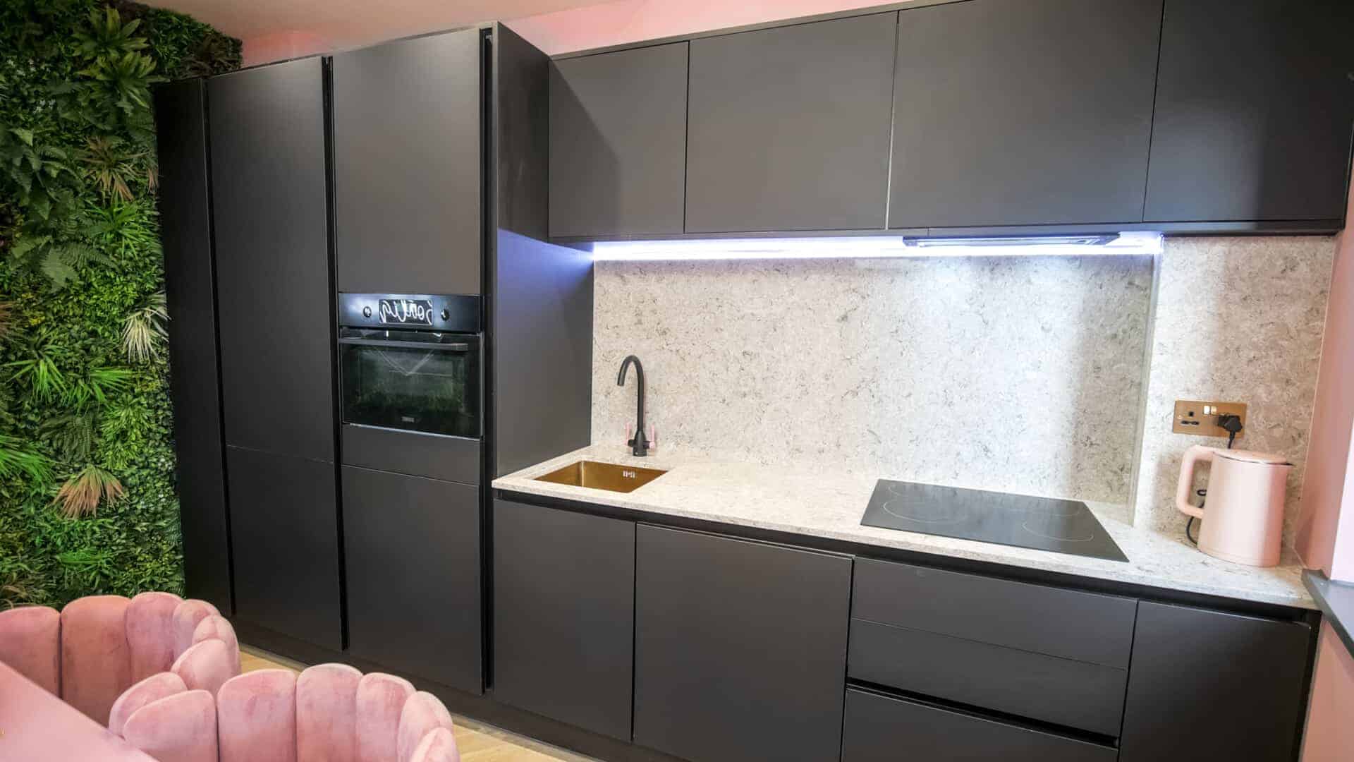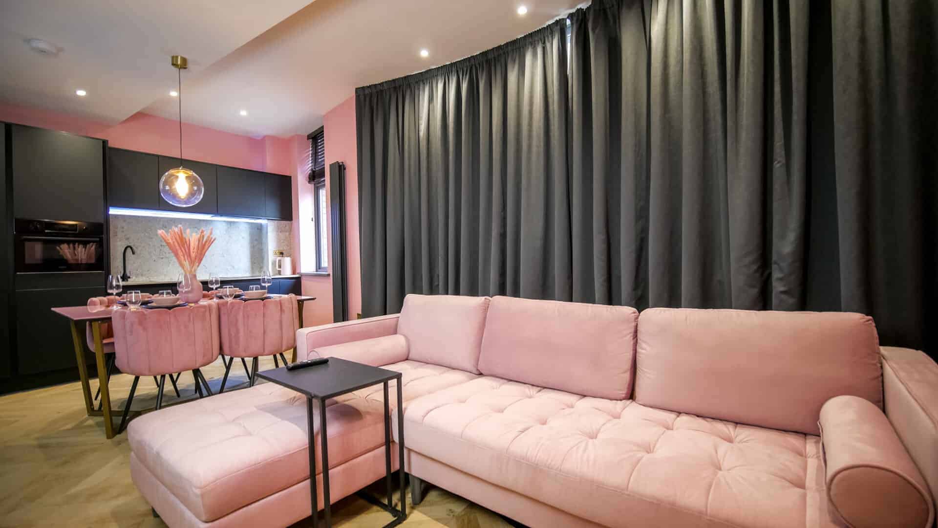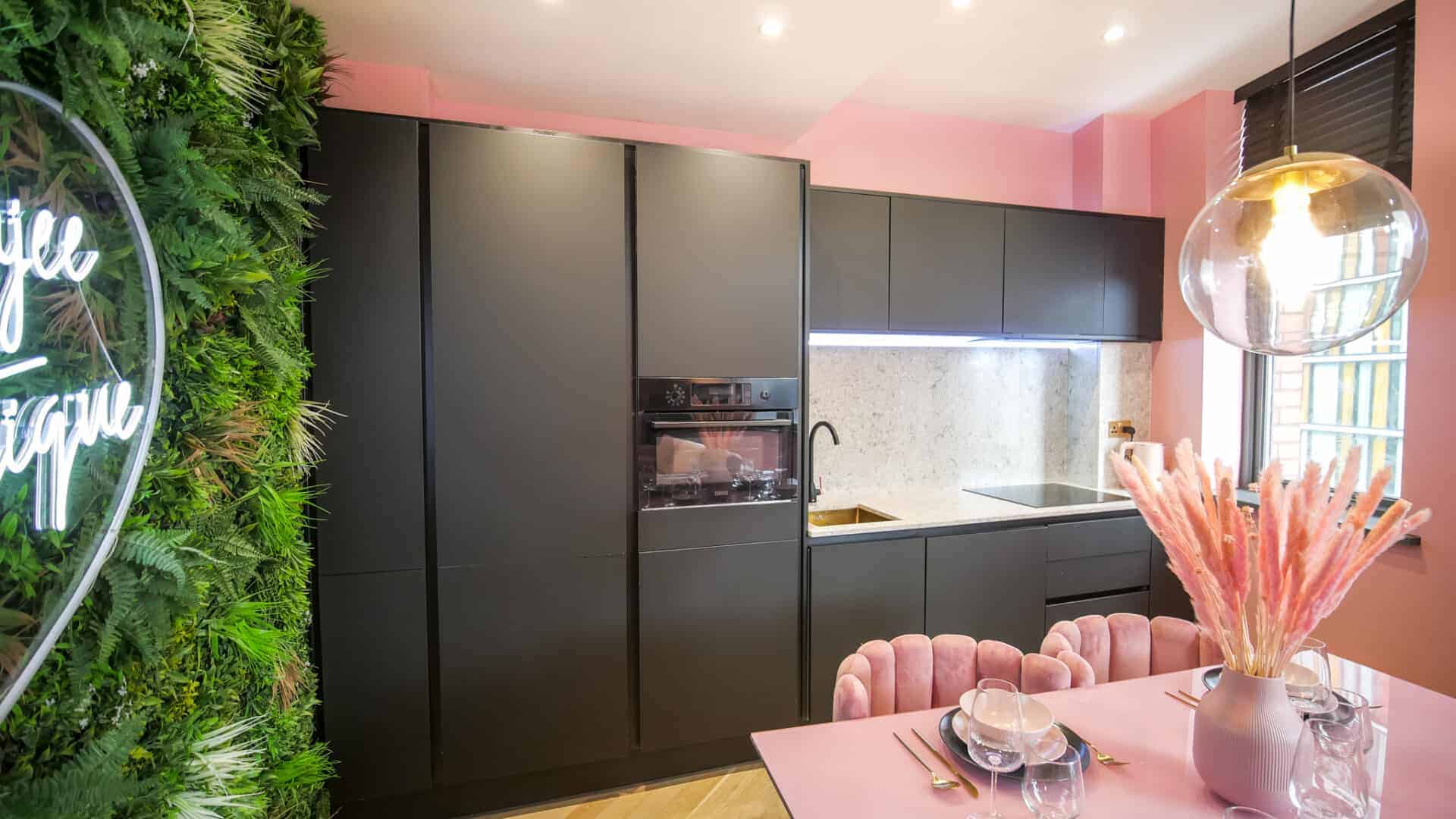 The living space boasts impressively high ceilings, an extremely comfortable sofa and a 50 inch Sky Glass TV with all streaming platforms. This is the ideal space to relax and wind down.Â