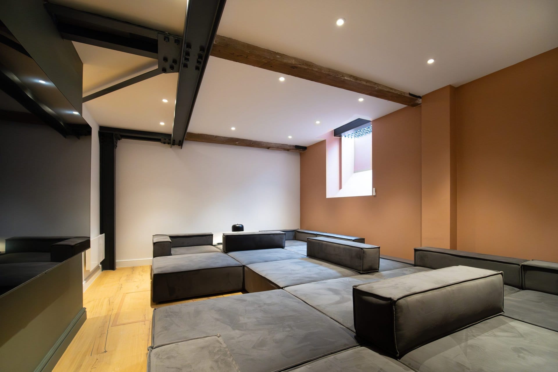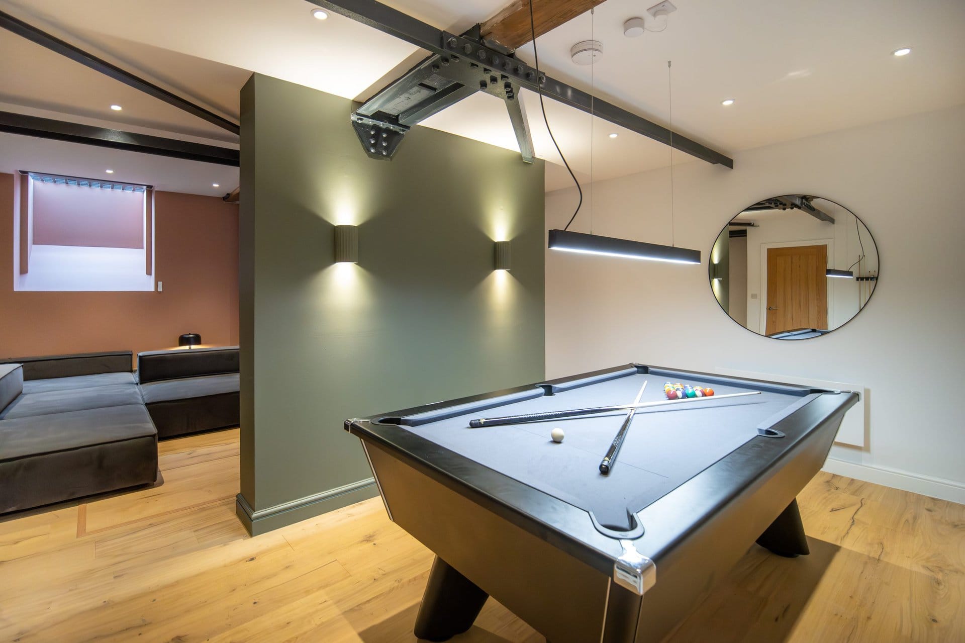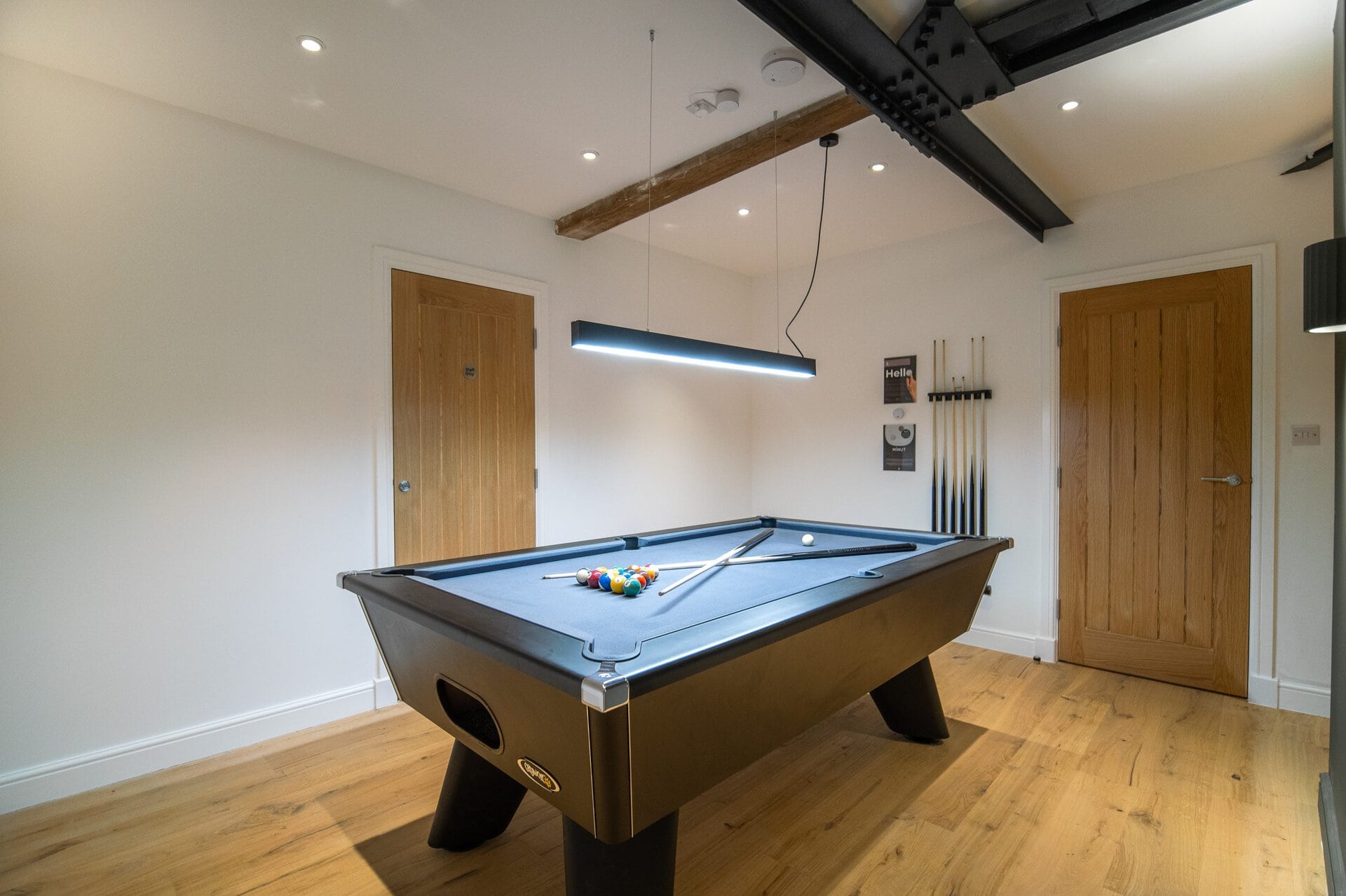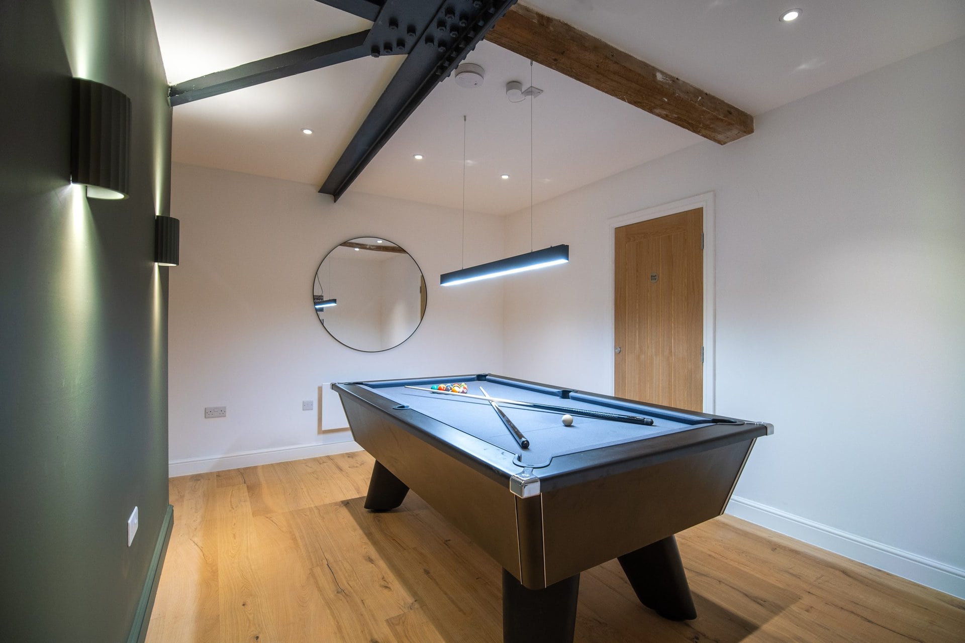 The living space boasts impressively high ceilings, an extremely comfortable sofa and a 50 inch Sky Glass TV with all streaming platforms. This is the ideal space to relax and wind down.Â