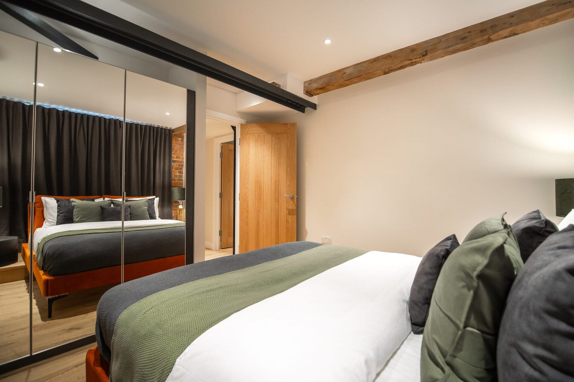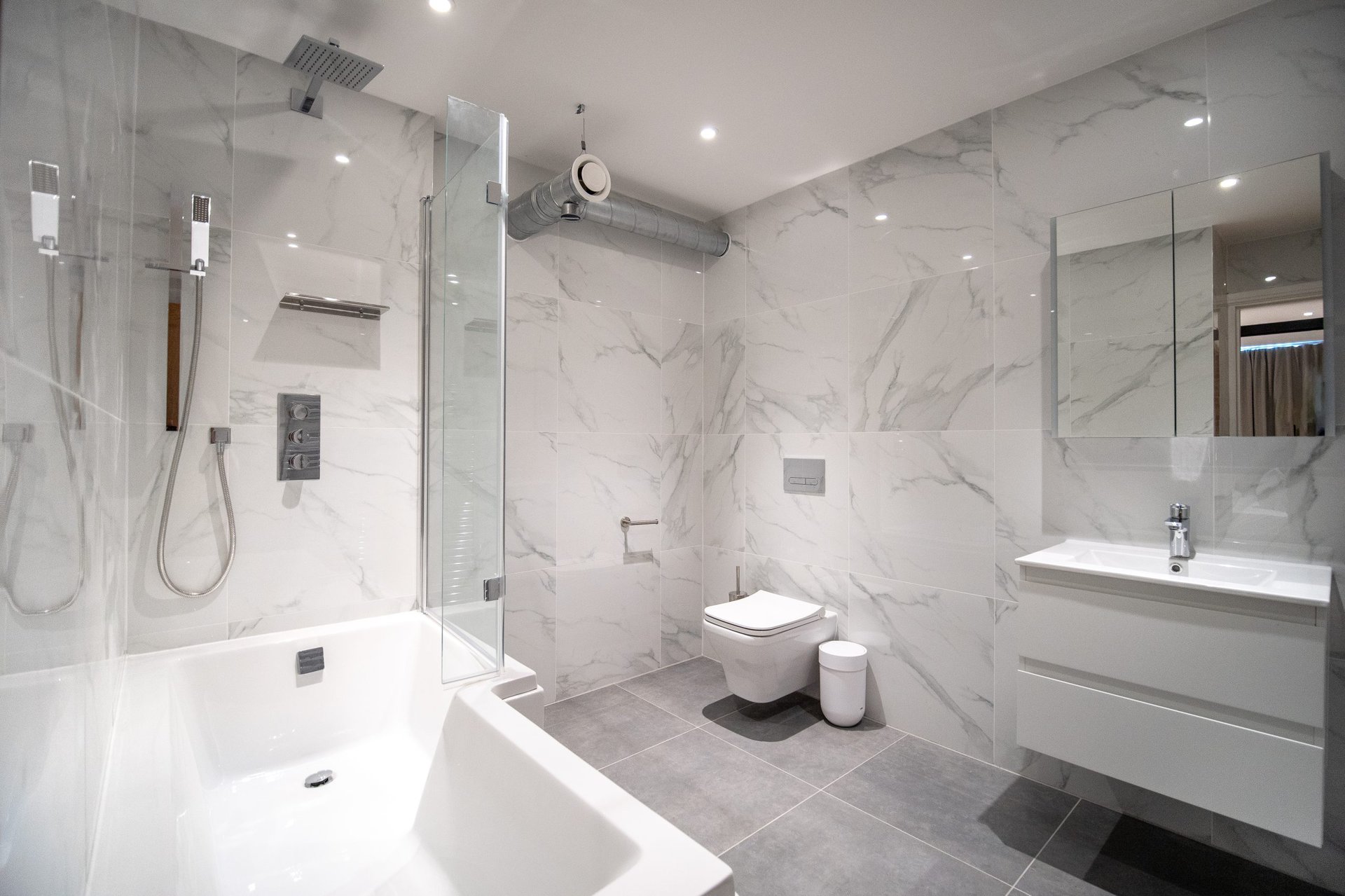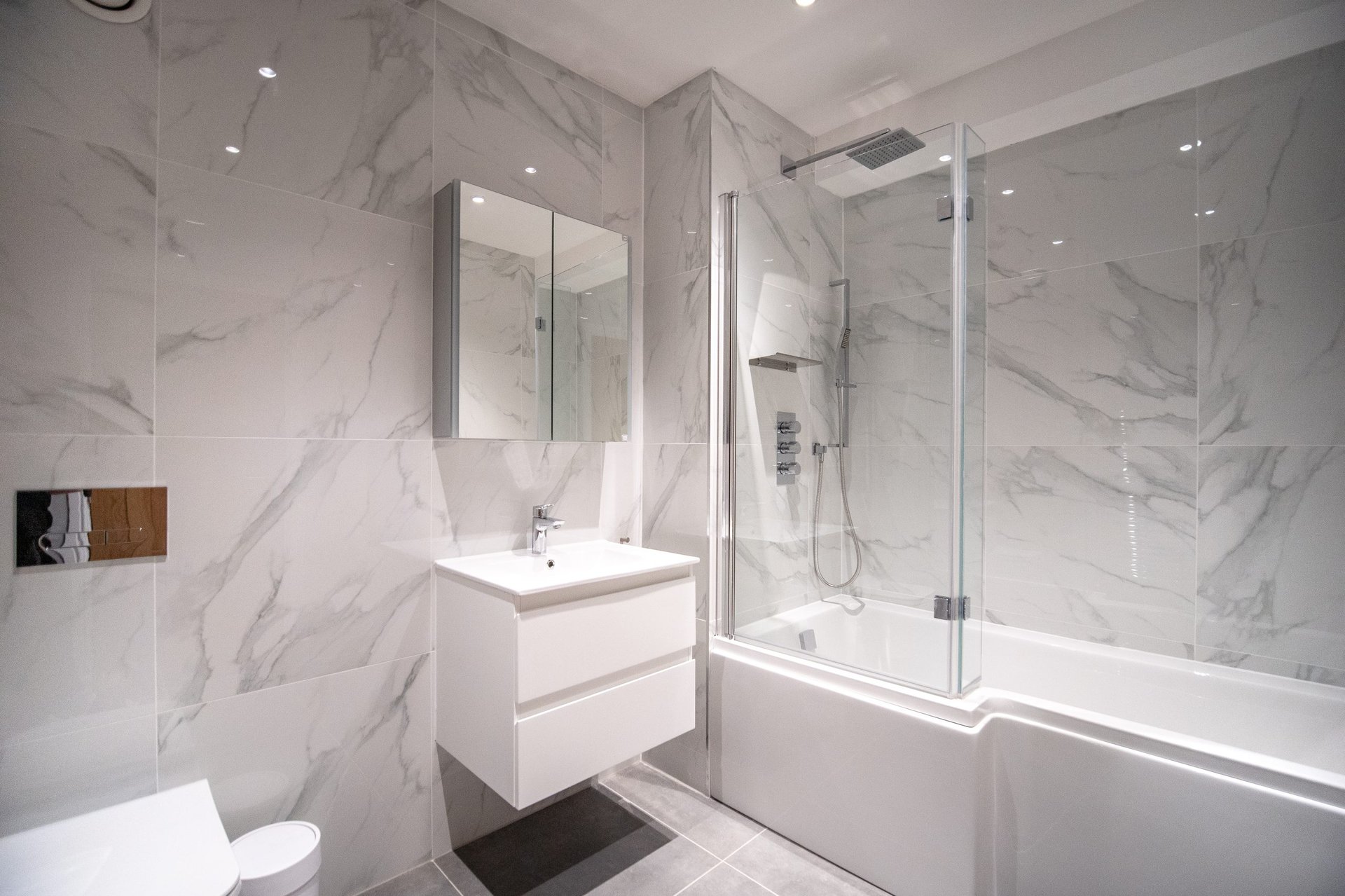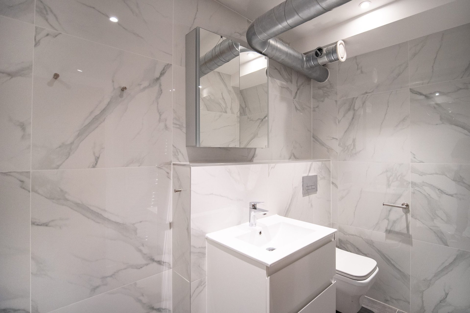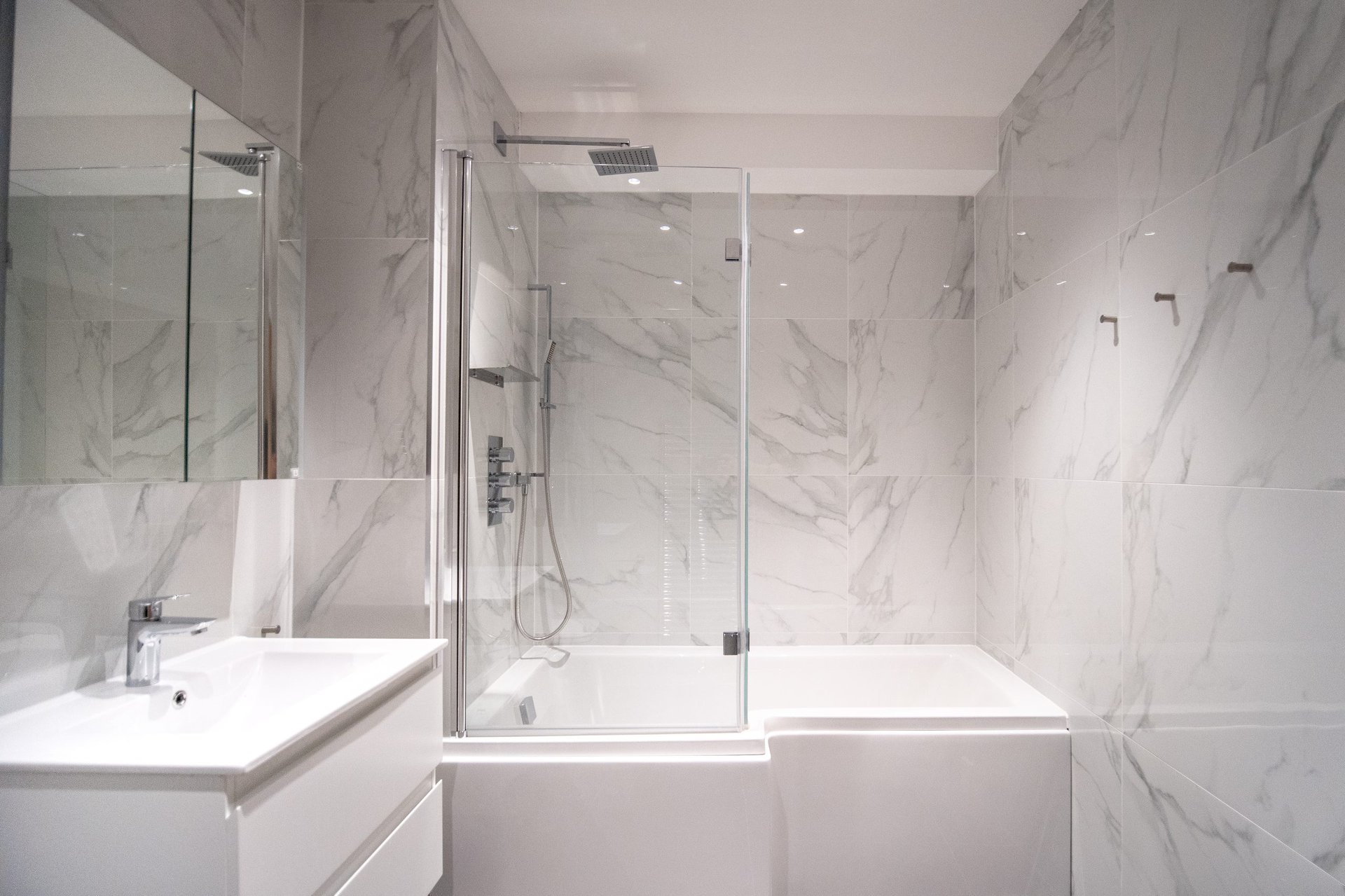 The bathrooms balance simplicity with luxury.Boasting a large walk in shower  in the upstairs en suite and a spacious tub in the downstairs both bathrooms have mirrored cabinets that help bounce light around the rooms.Â