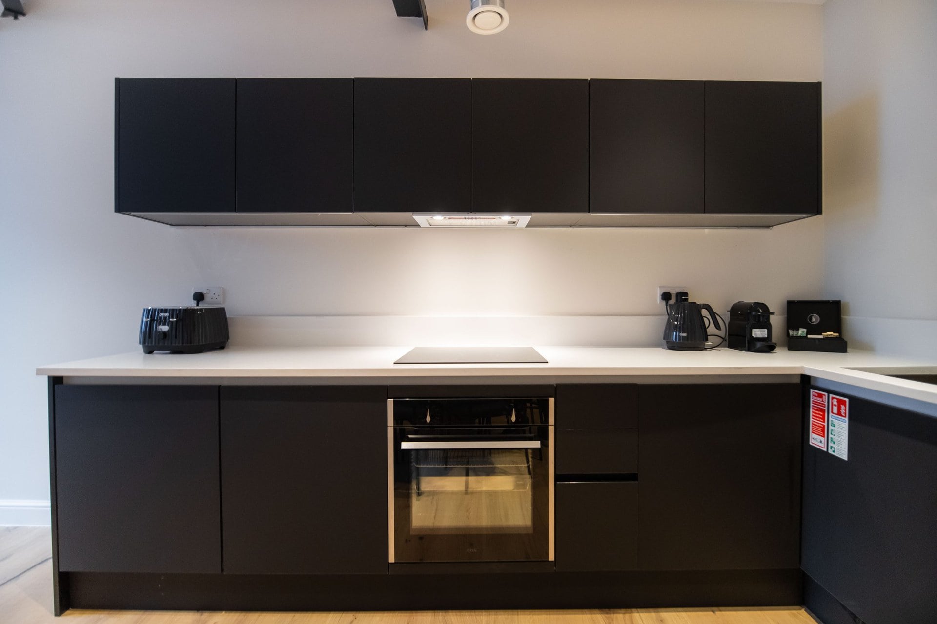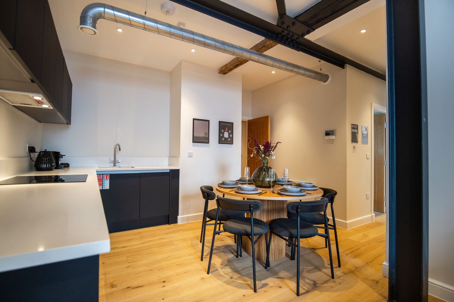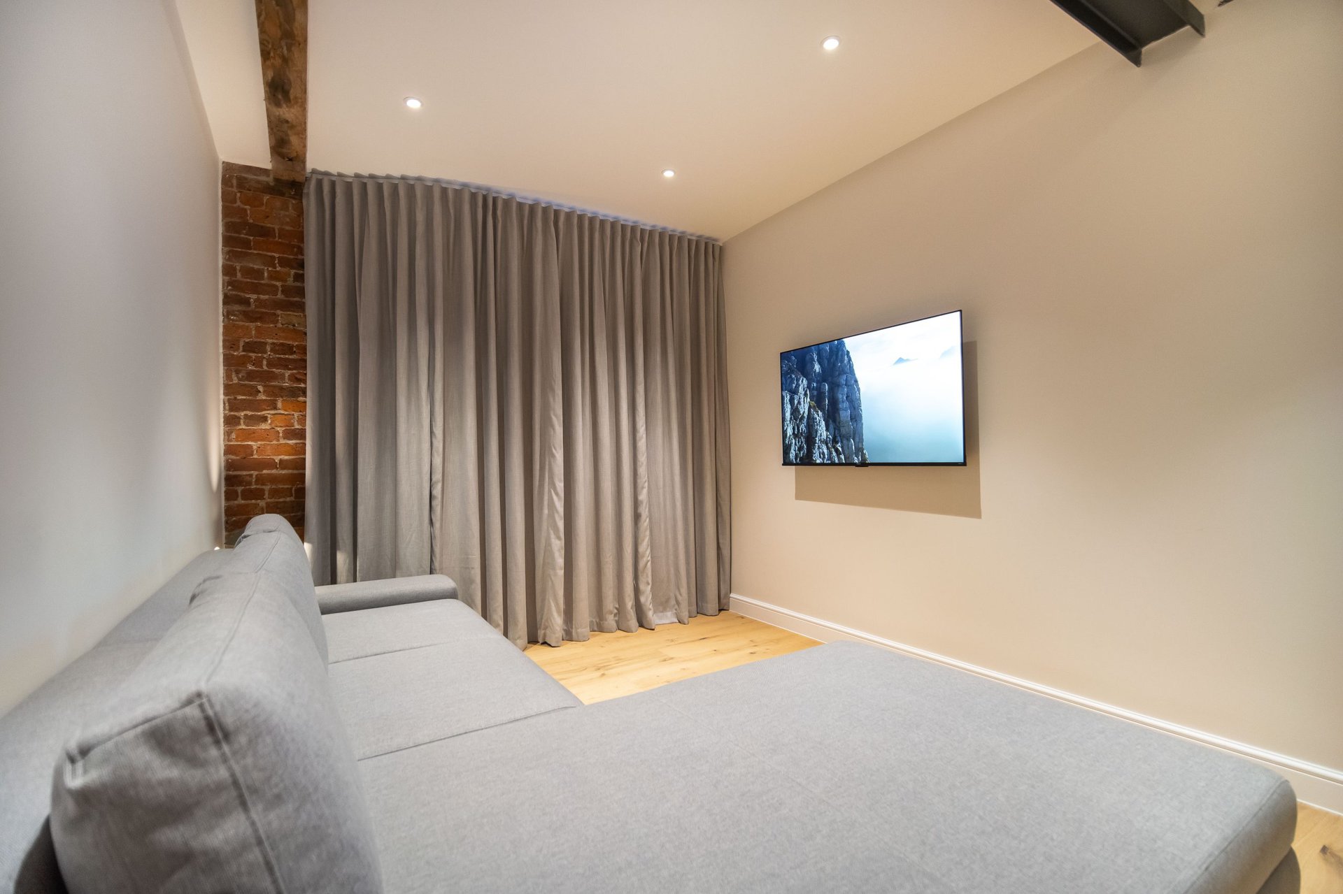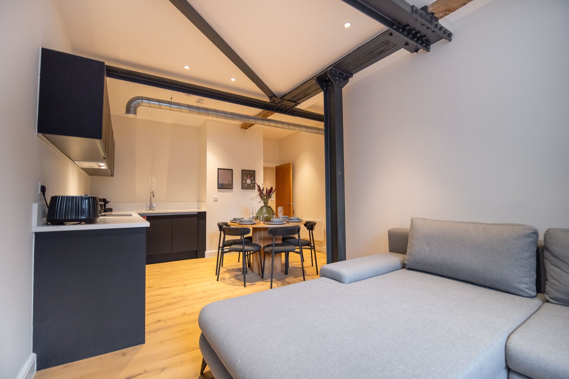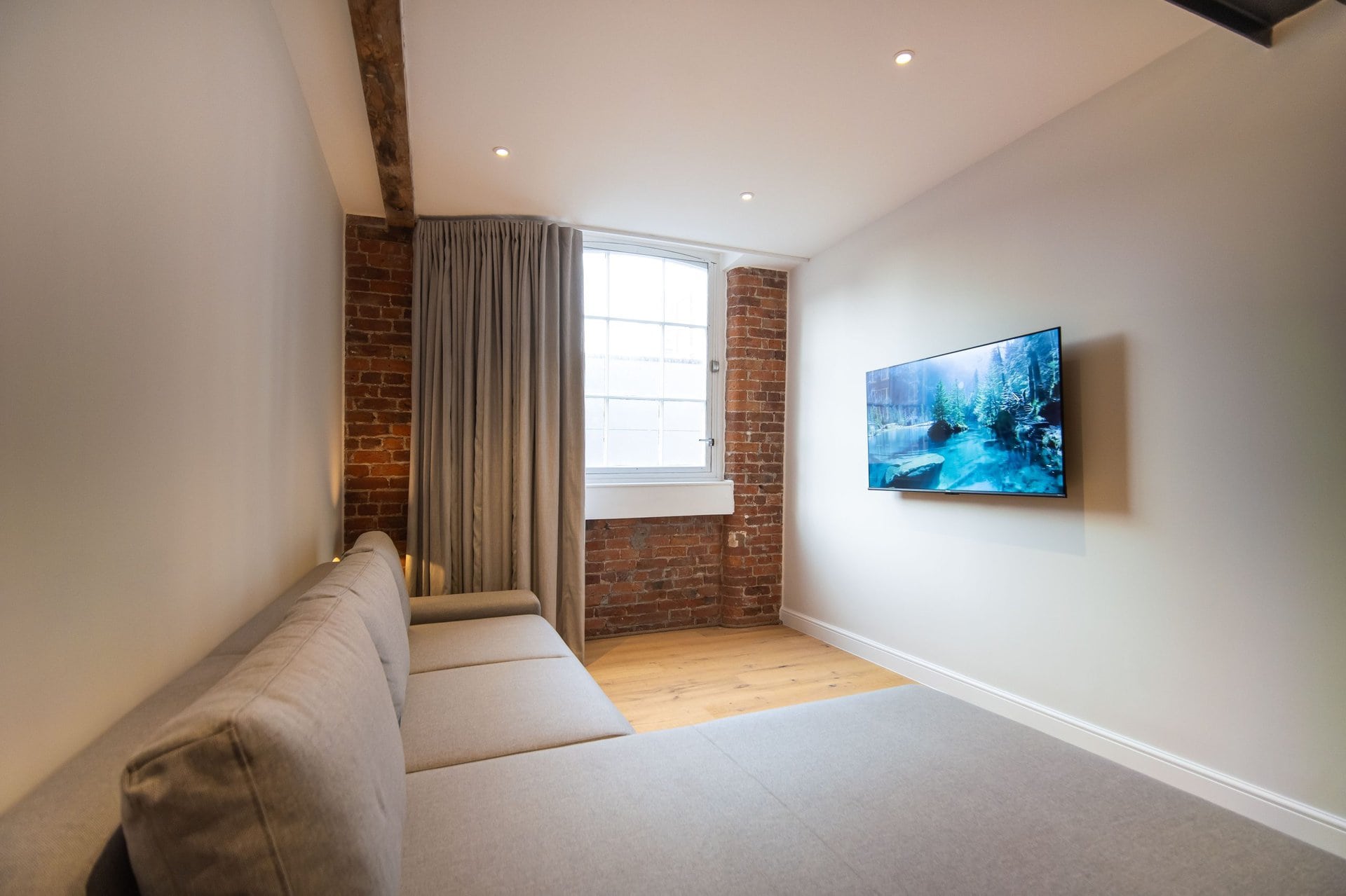The living space boasts impressively high ceilings, an extremely comfortable sofa and a 50 inch Sky Glass TV with all streaming platforms. This is the ideal space to relax and wind down.Â