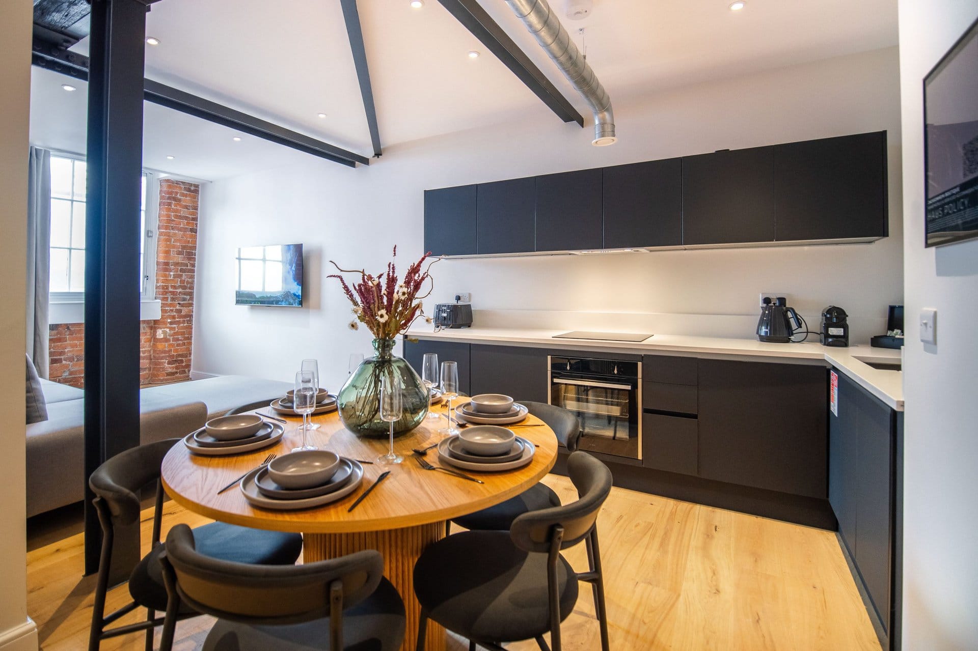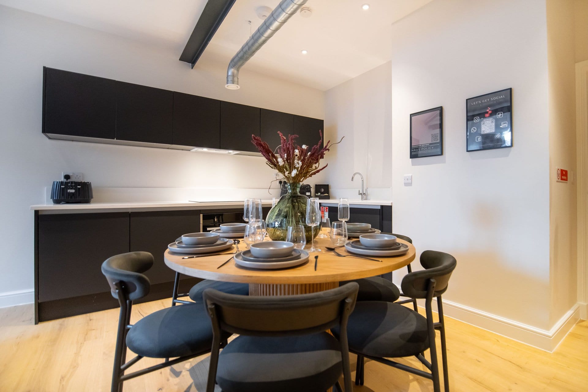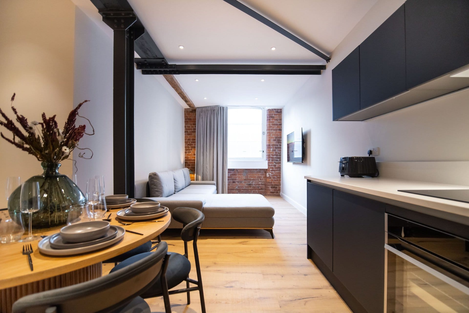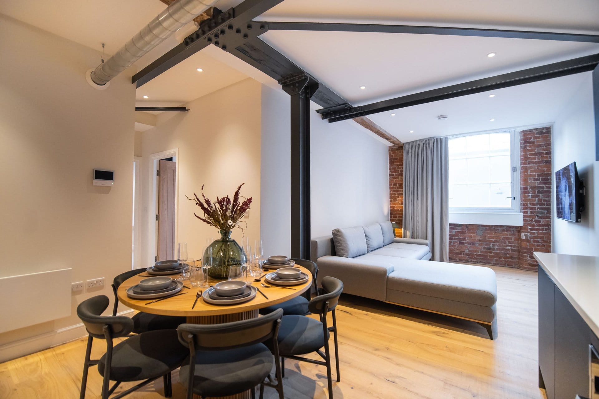 The living space boasts impressively high ceilings, an extremely comfortable sofa and a 50 inch Sky Glass TV with all streaming platforms. This is the ideal space to relax and wind down.Â