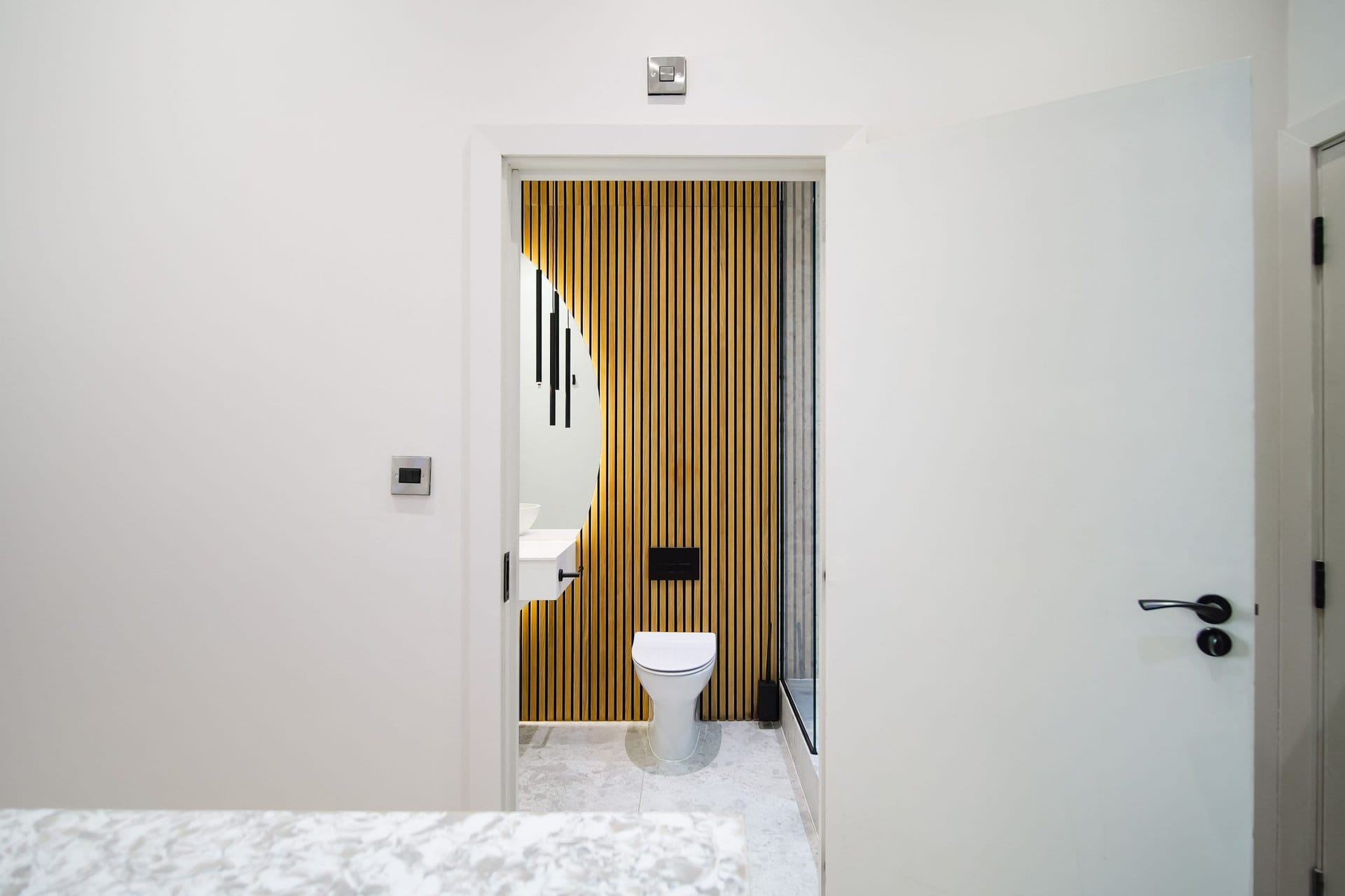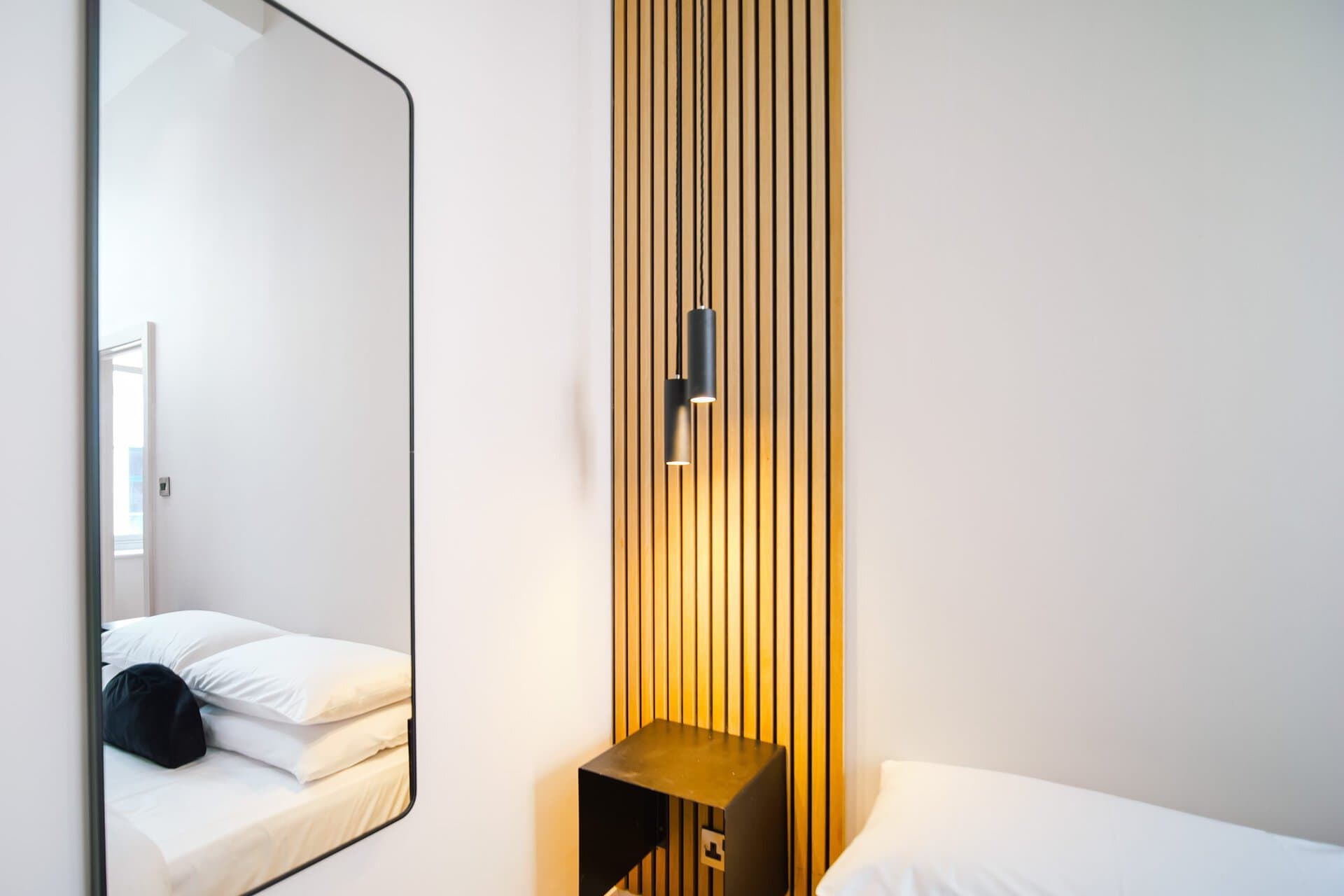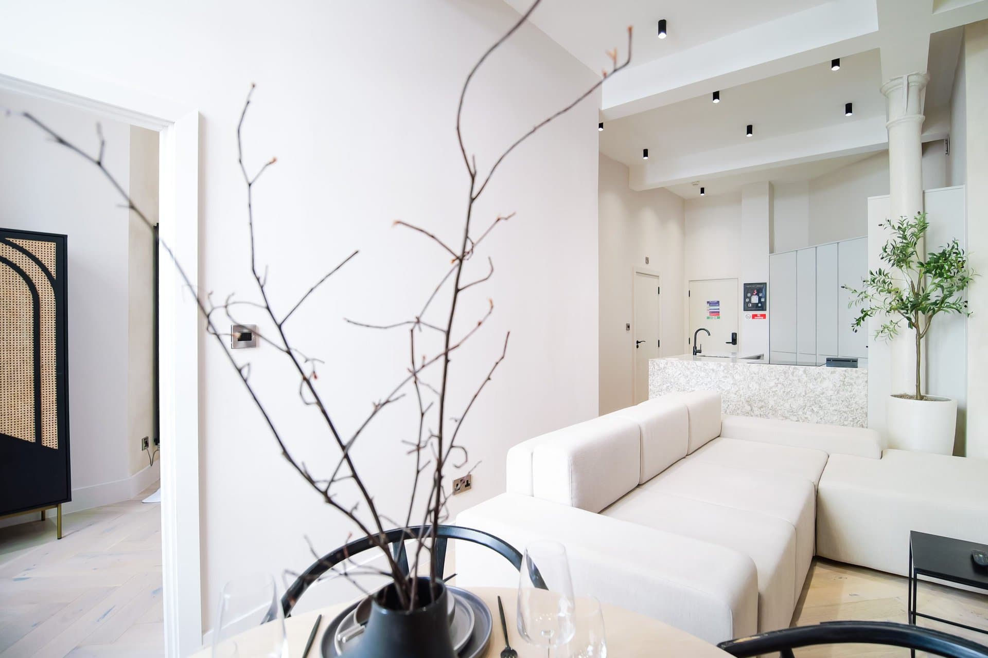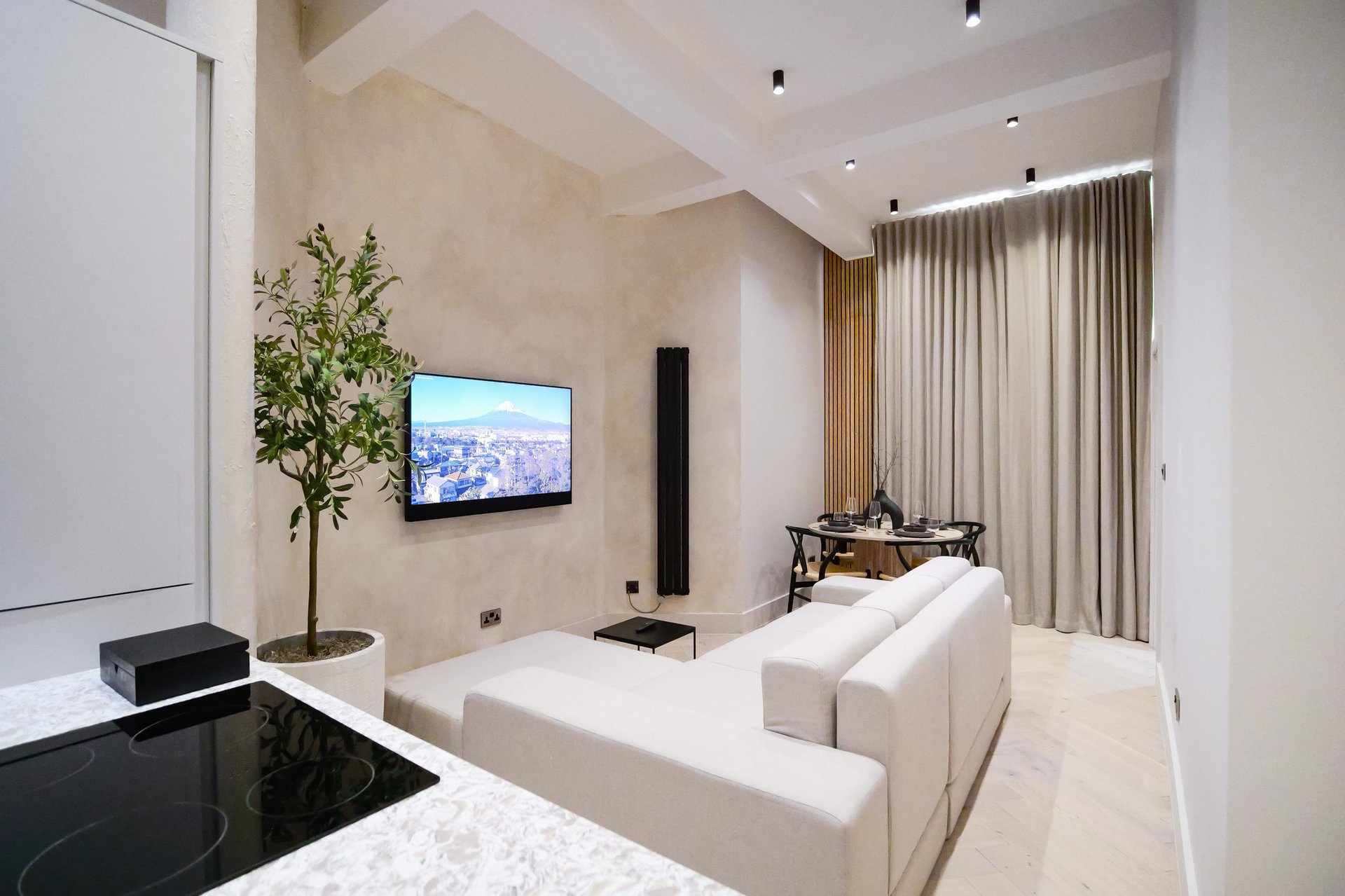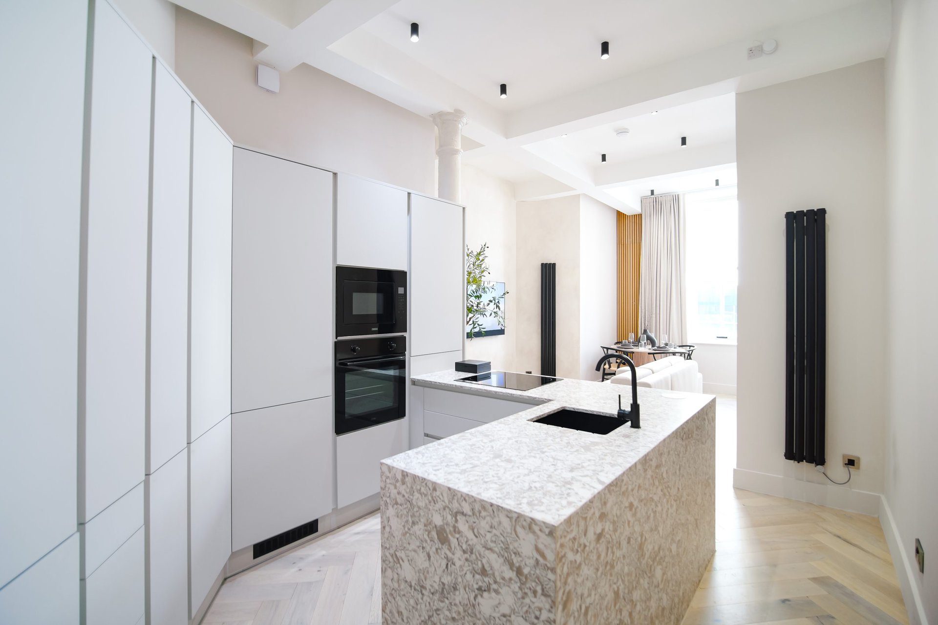 The living space boasts impressively high ceilings, an extremely comfortable sofa and a 50 inch Sky Glass TV with all streaming platforms. This is the ideal space to relax and wind down.Â