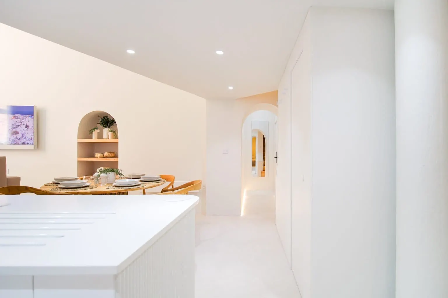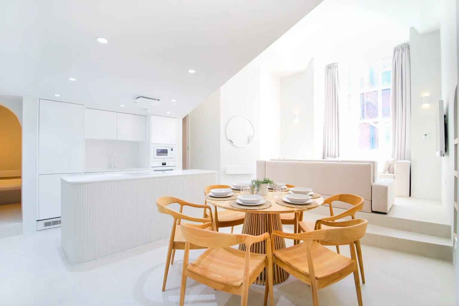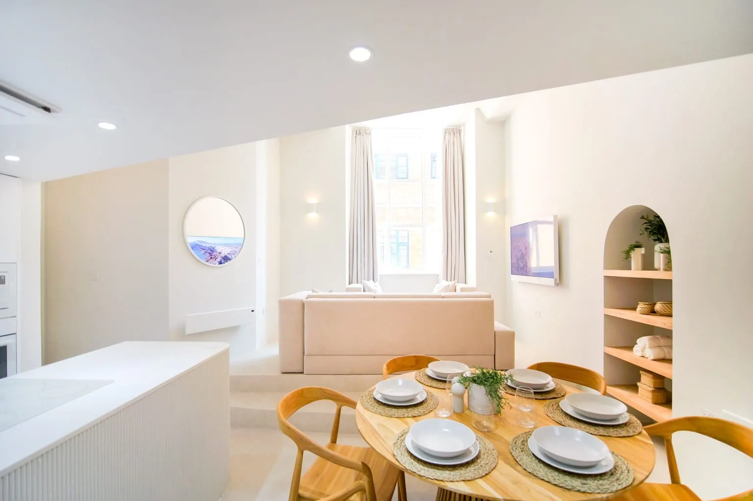 The living space boasts impressively high ceilings, an extremely comfortable sofa and a 50 inch Sky Glass TV with all streaming platforms. This is the ideal space to relax and wind down.Â