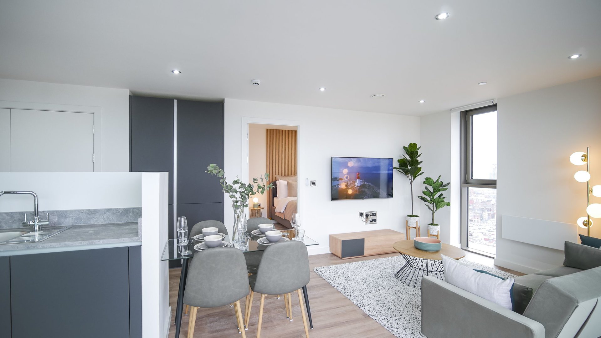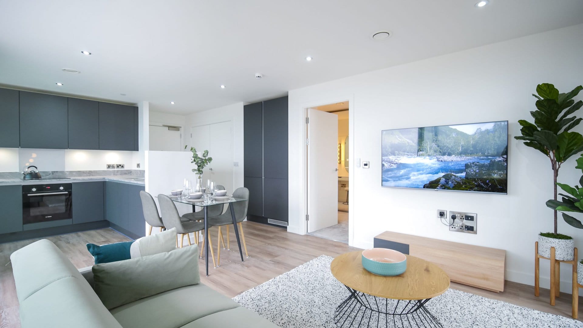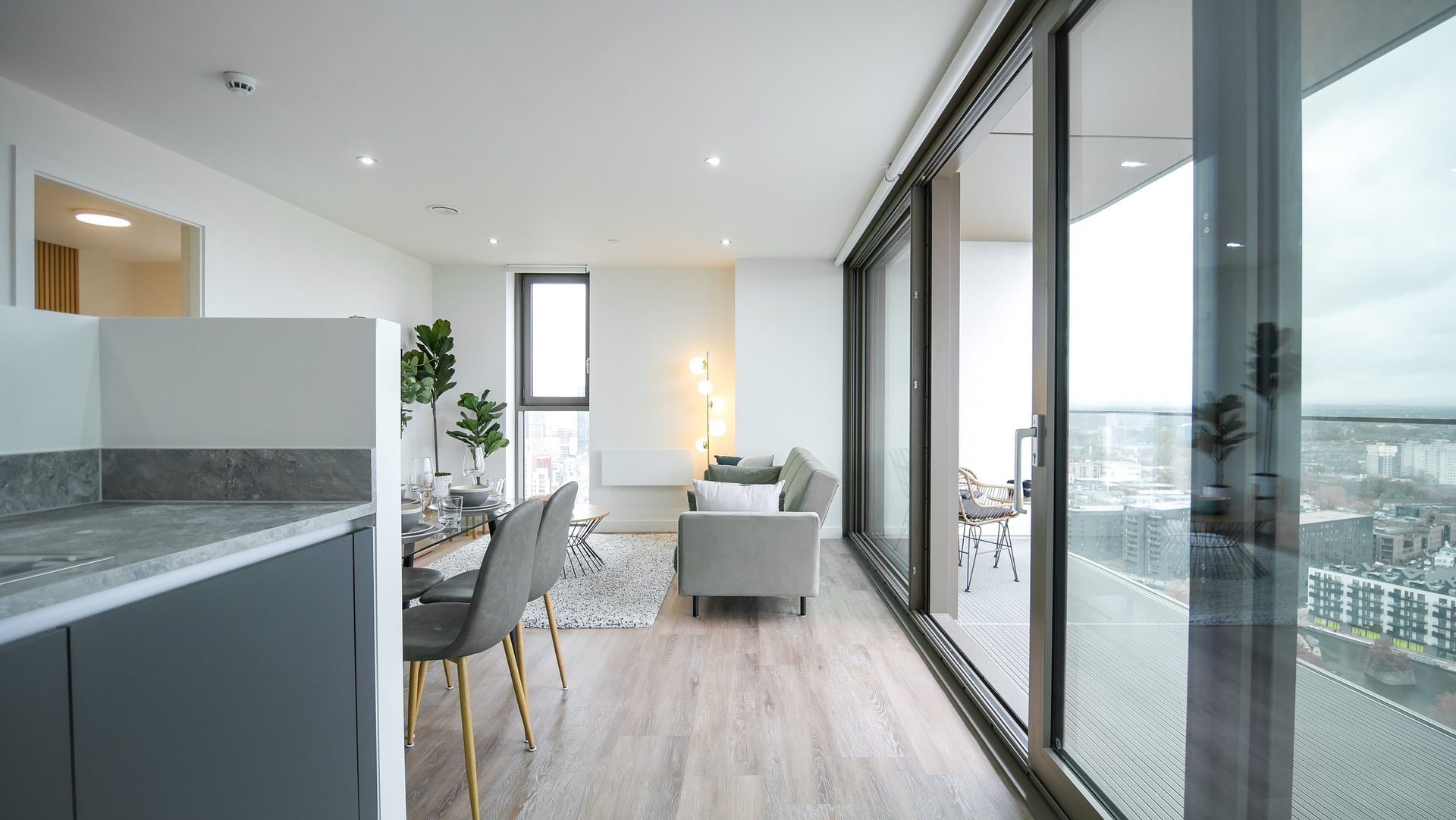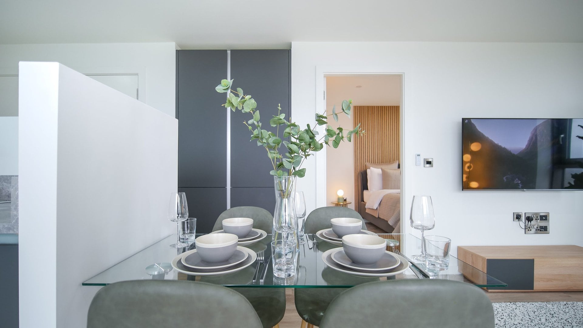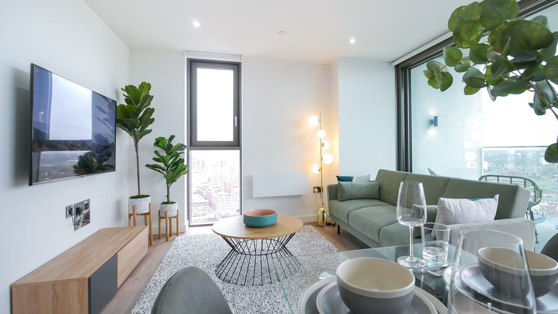 The living space boasts impressively high ceilings, an extremely comfortable sofa and a 50 inch Sky Glass TV with all streaming platforms. This is the ideal space to relax and wind down.Â